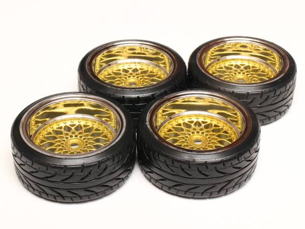 1/10ドリフトカー用 ハードタイヤ組込み済み ゴールドメッシュ激深リムホイール4本セットです。