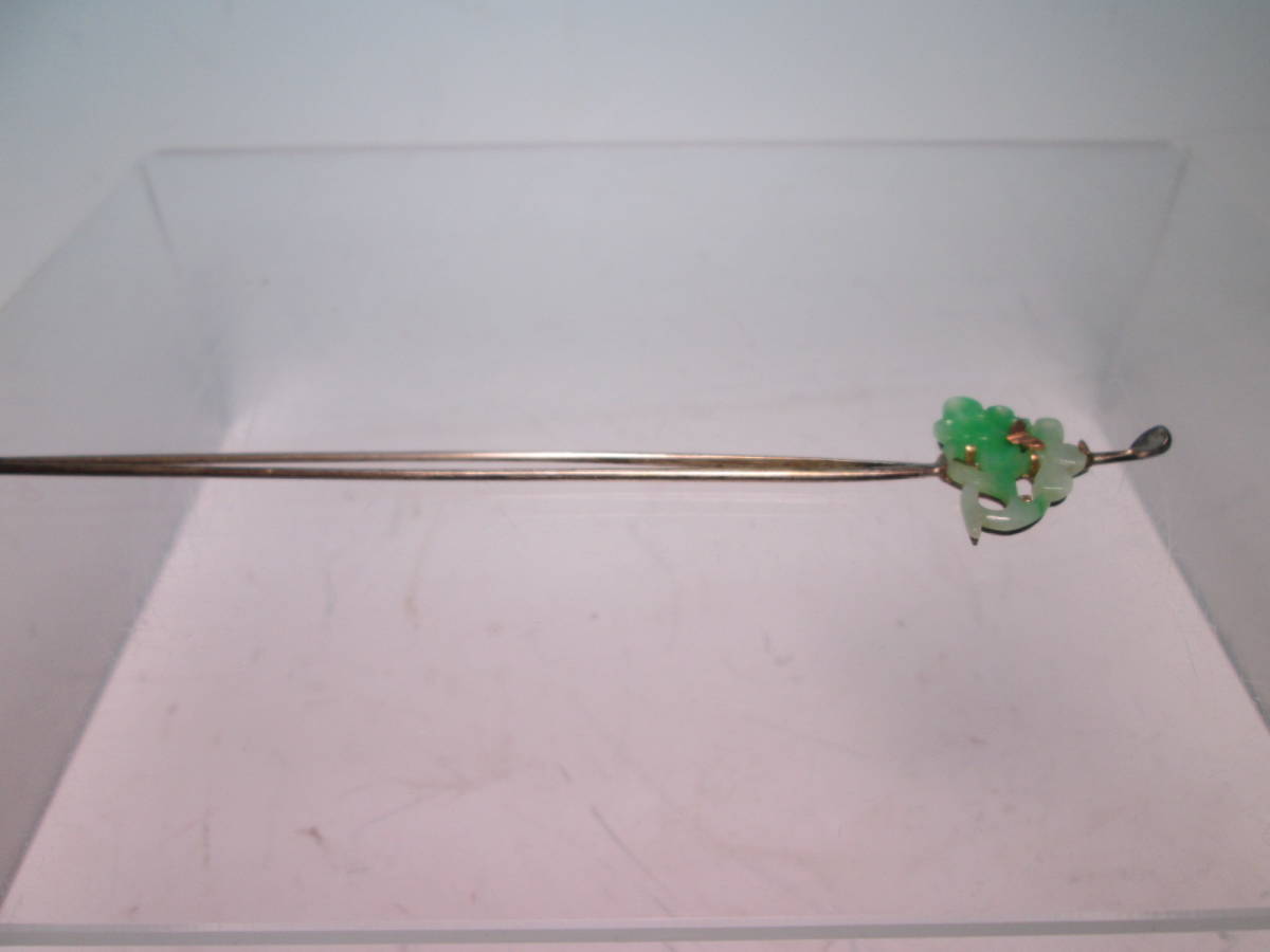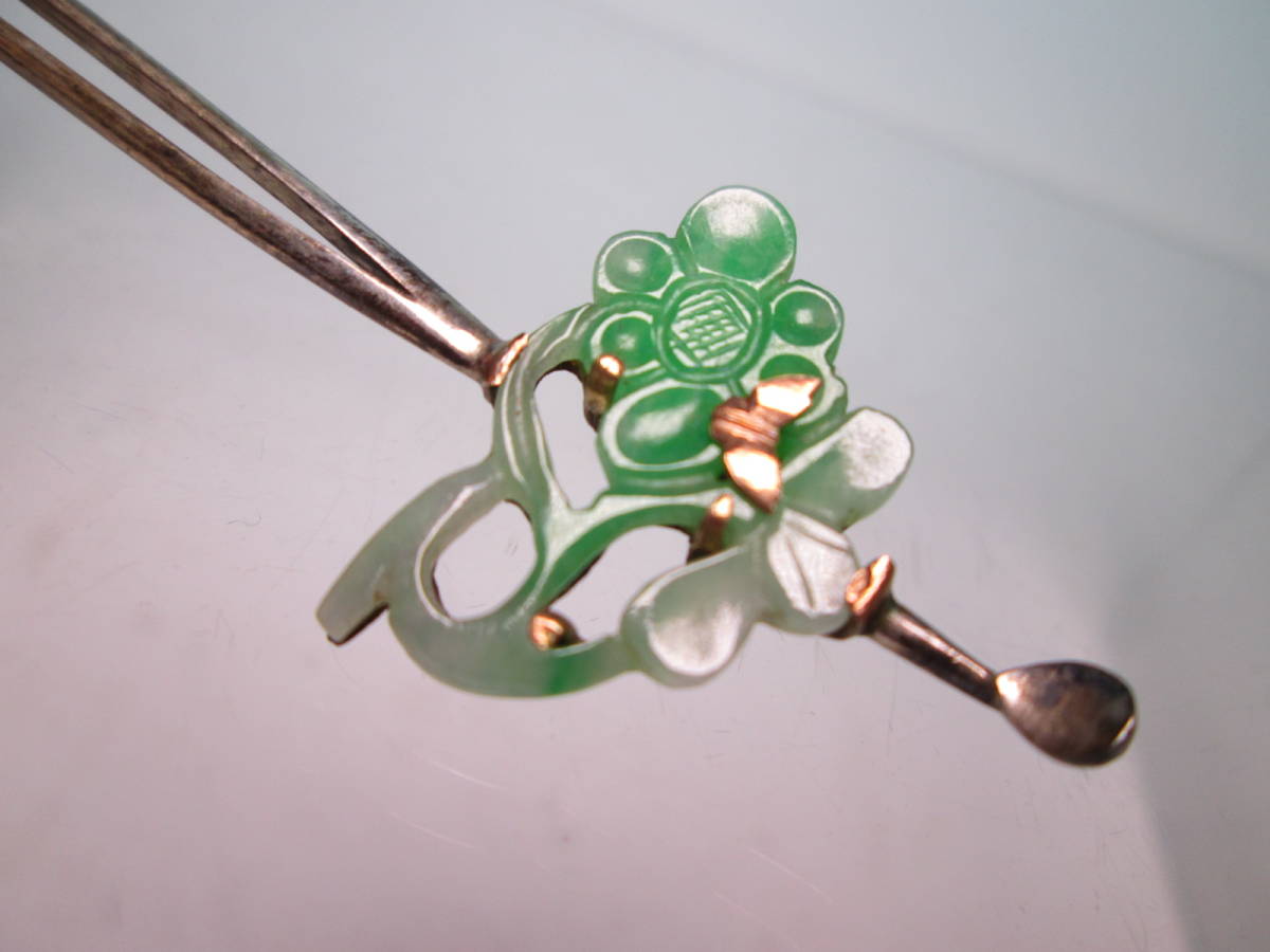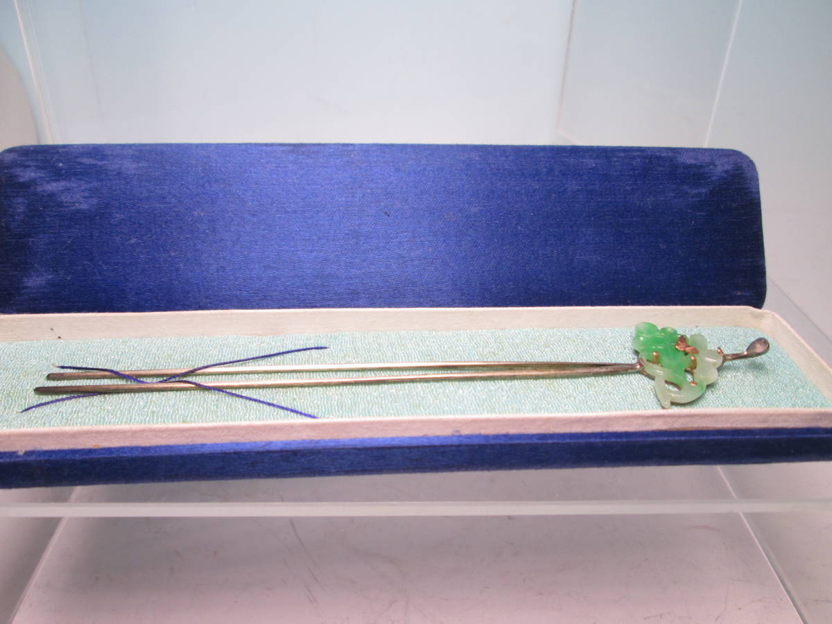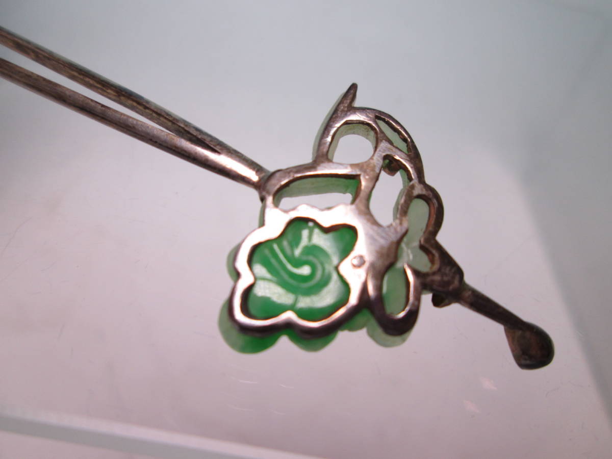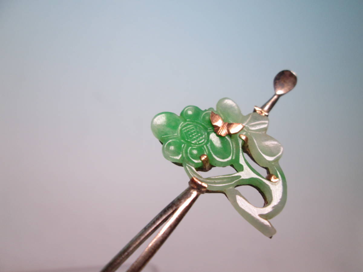 【江月】アンティーク・彫金細工 本翡翠 梅花透かし彫刻のかんざし 5,19g 共ケース付