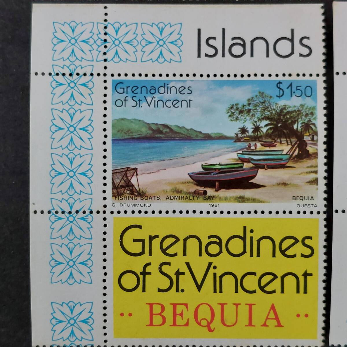 1981年にセントビンセント・グラナディーンが発行した「ベキア島発行タブ付き切手4種完 」です。