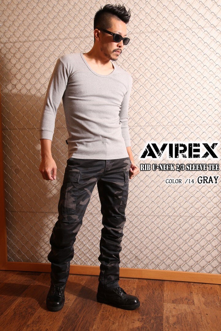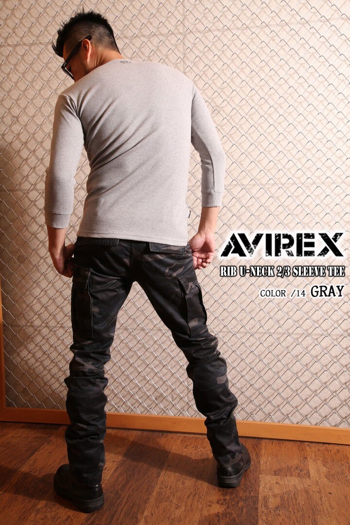 AVIREX アビレックス 7分袖 Tシャツ Uネック 無地 デイリーウエア 6143509
