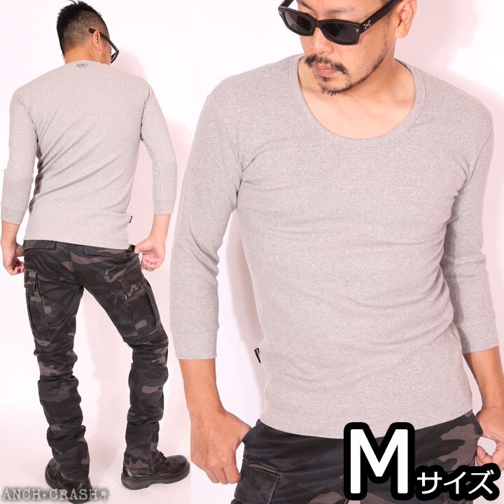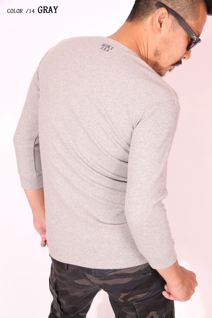 アビレックス AVIREX 7分袖 Tシャツ Uネック 無地 デイリーウエア 6143509 グレー【Mサイズ 】