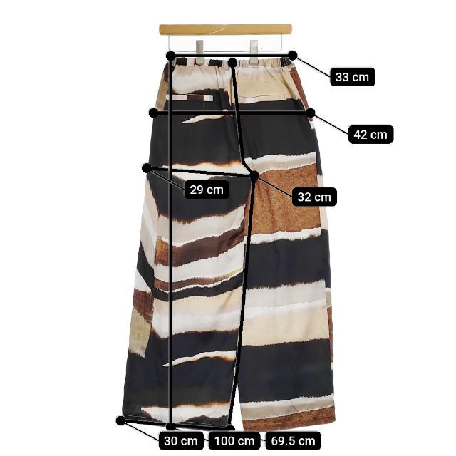 | 実寸サイズ | 総丈:約100cm ウエスト:約33cm ウエスト最長:約44cm 股上:約32cm 股下:約69.5cm ヒップ:約42cm ワタリ幅:約29cm 裾幅:約30cm ※記載以外のサイズが合わないことを理由とした返品はできませんので、 記載部分以外で実寸サイズの気になる箇所があれば必ず購入前にご質問ください。 |