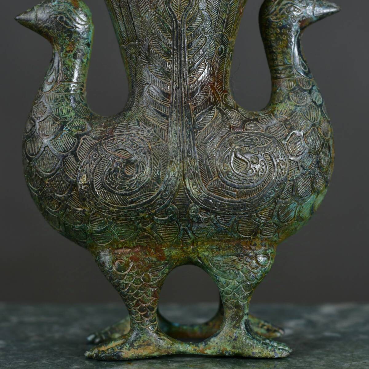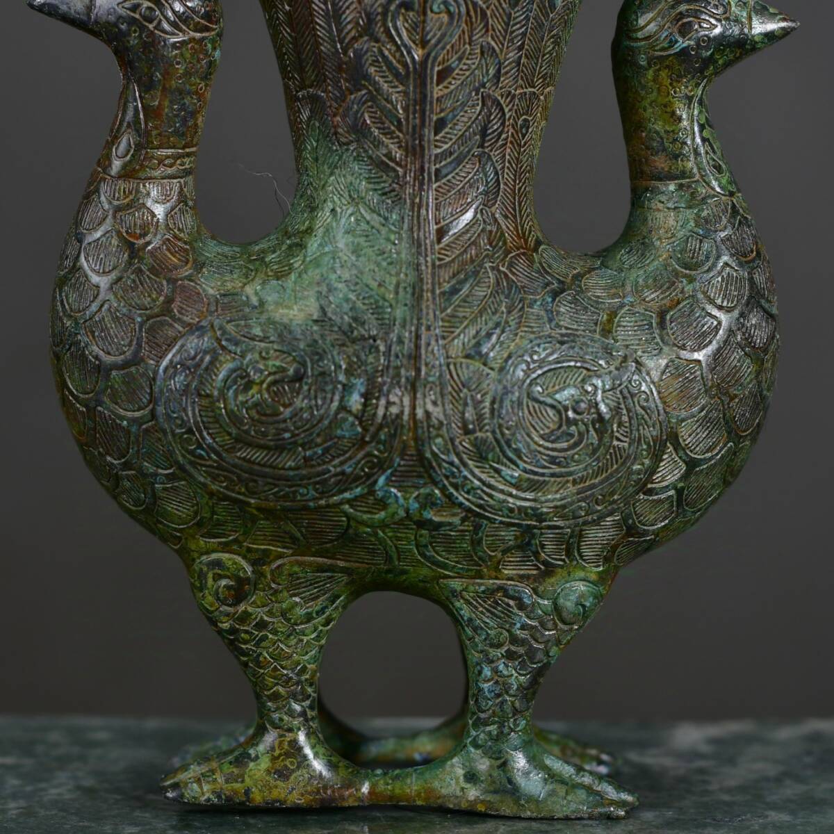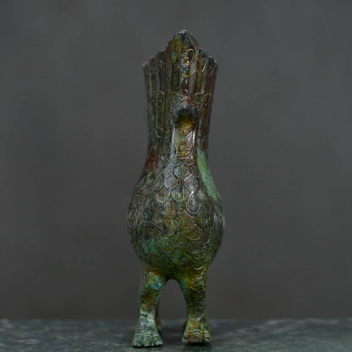 ◆旧家蔵出◆古美術 中国古玩 西周時期 古銅製 青銅器 銘文 鳳杯 細密細工造 置物 擺件 古賞物 骨董 時代物 AT17