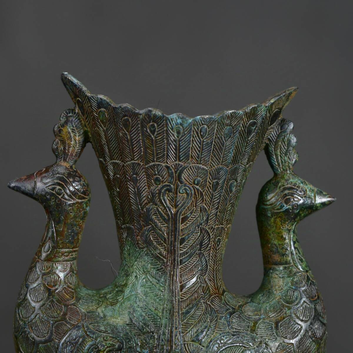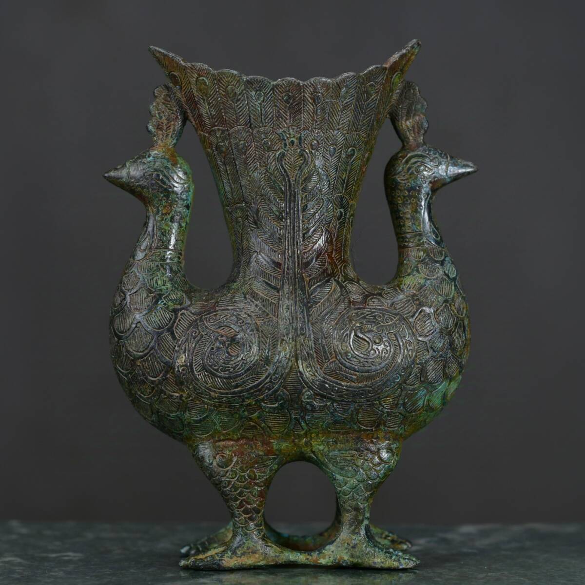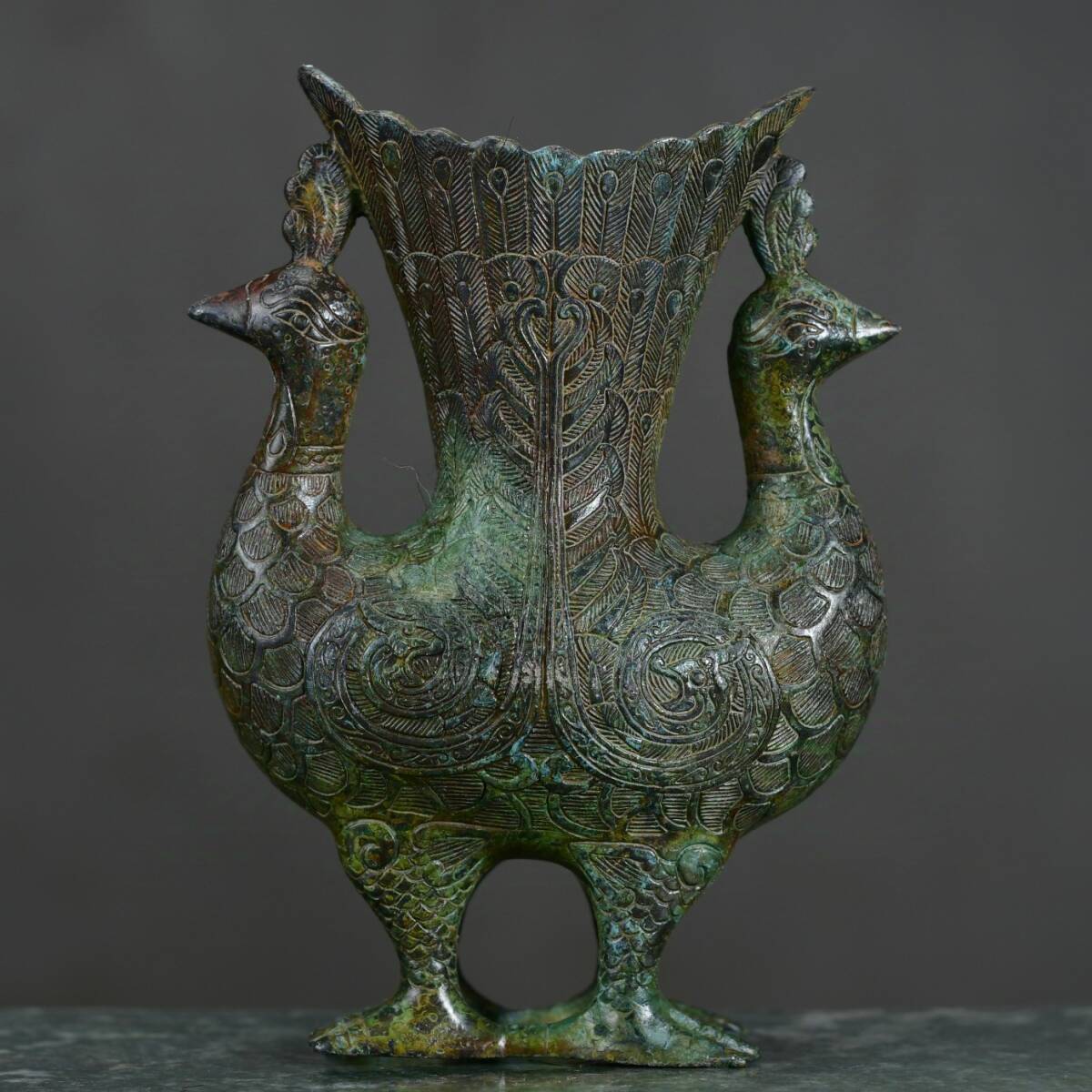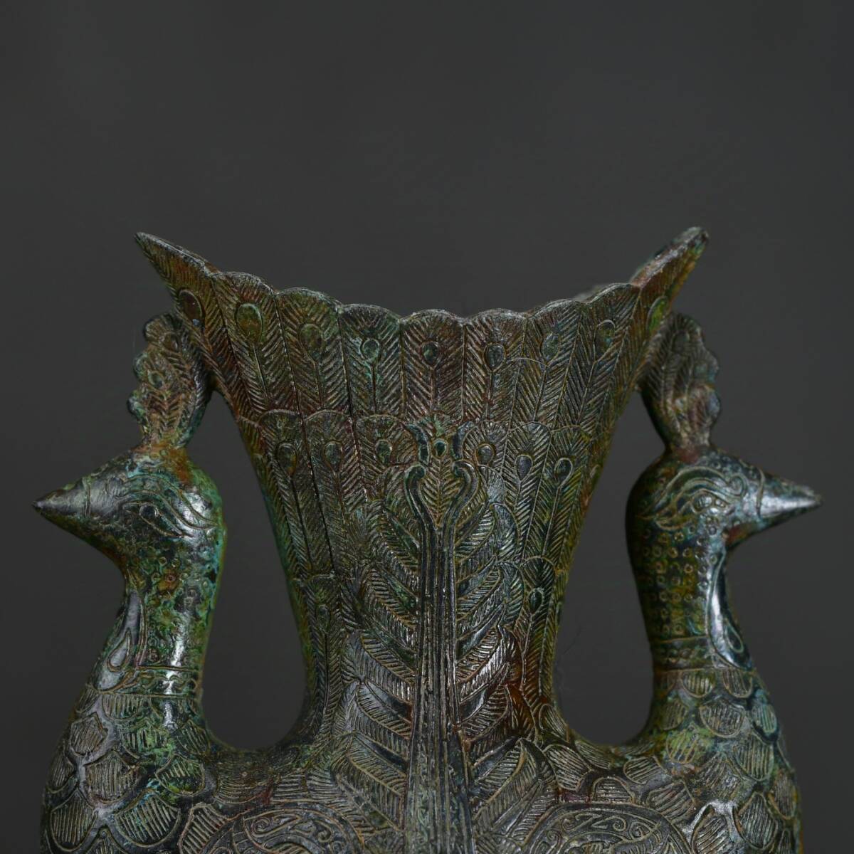 ◆旧家蔵出◆古美術 中国古玩 西周時期 古銅製 青銅器 銘文 鳳杯 細密細工造 置物 擺件 古賞物 骨董 時代物 AT17