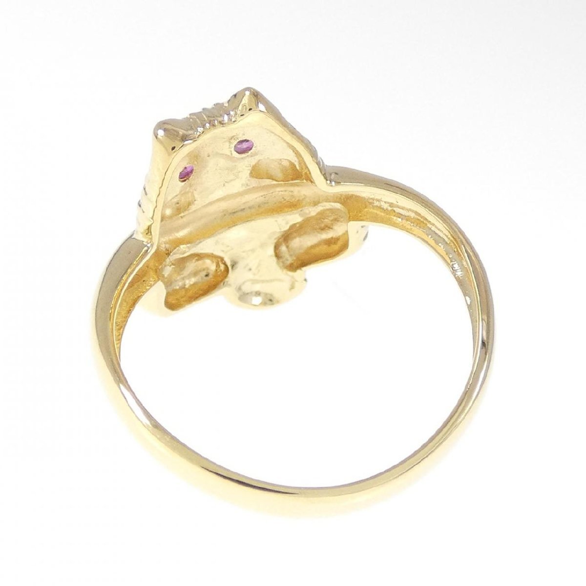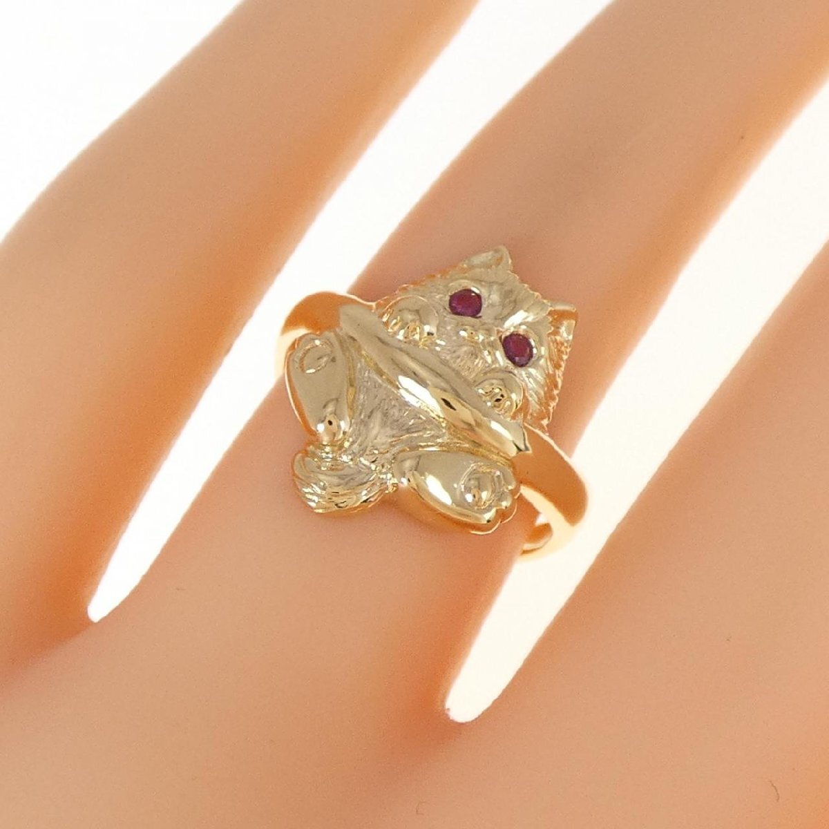 赤く煌めくルビーを瞳に込めた猫モチーフのリング。カジュアルな装いに似合いそうなジュエリーです。