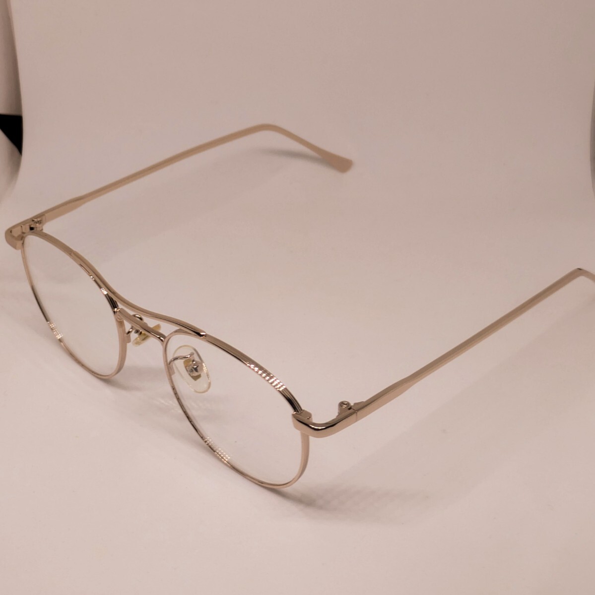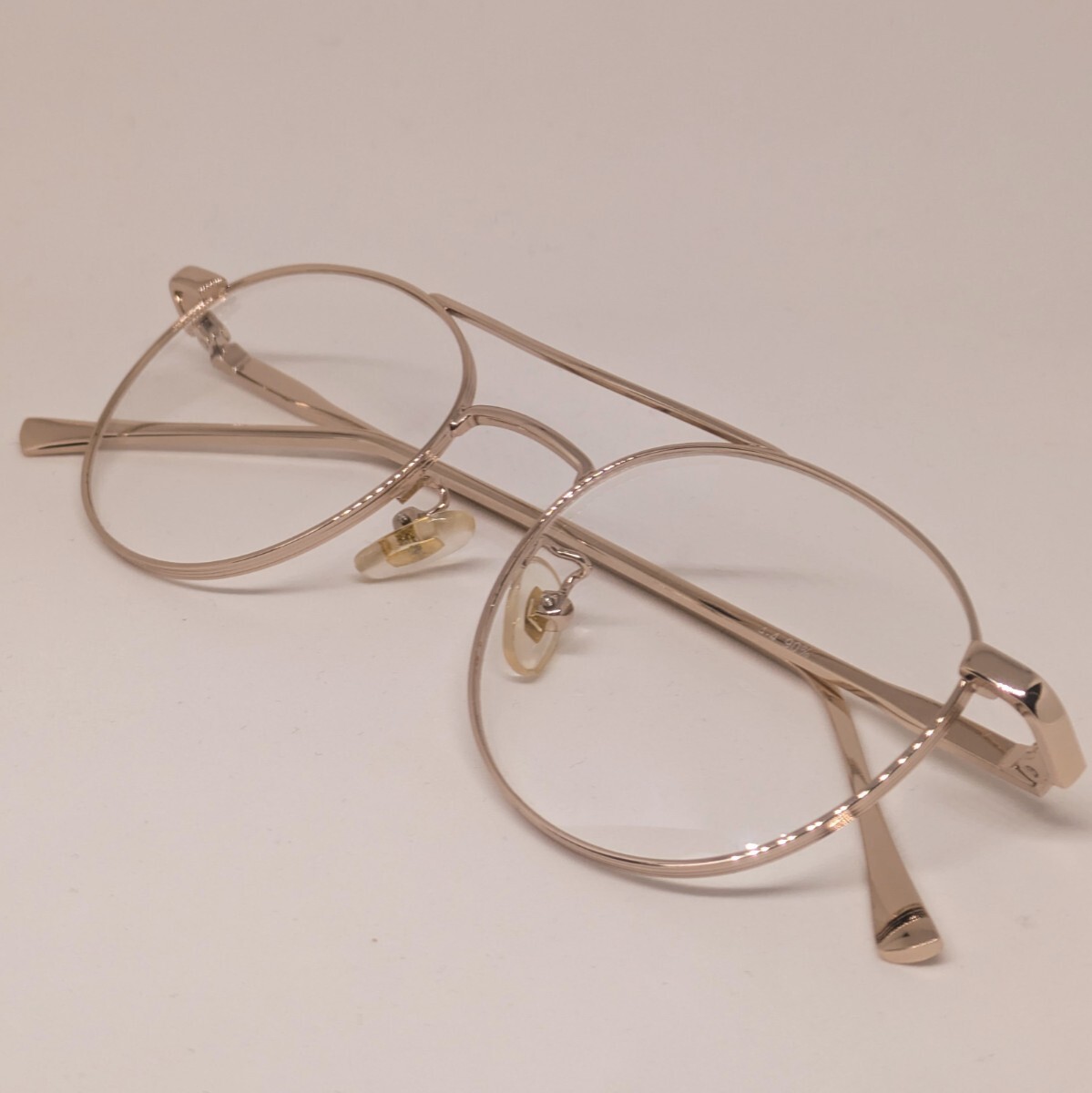 ラウンドメタル ダブルブリッジ ゴールド ボストン サングラス クリアレンズ