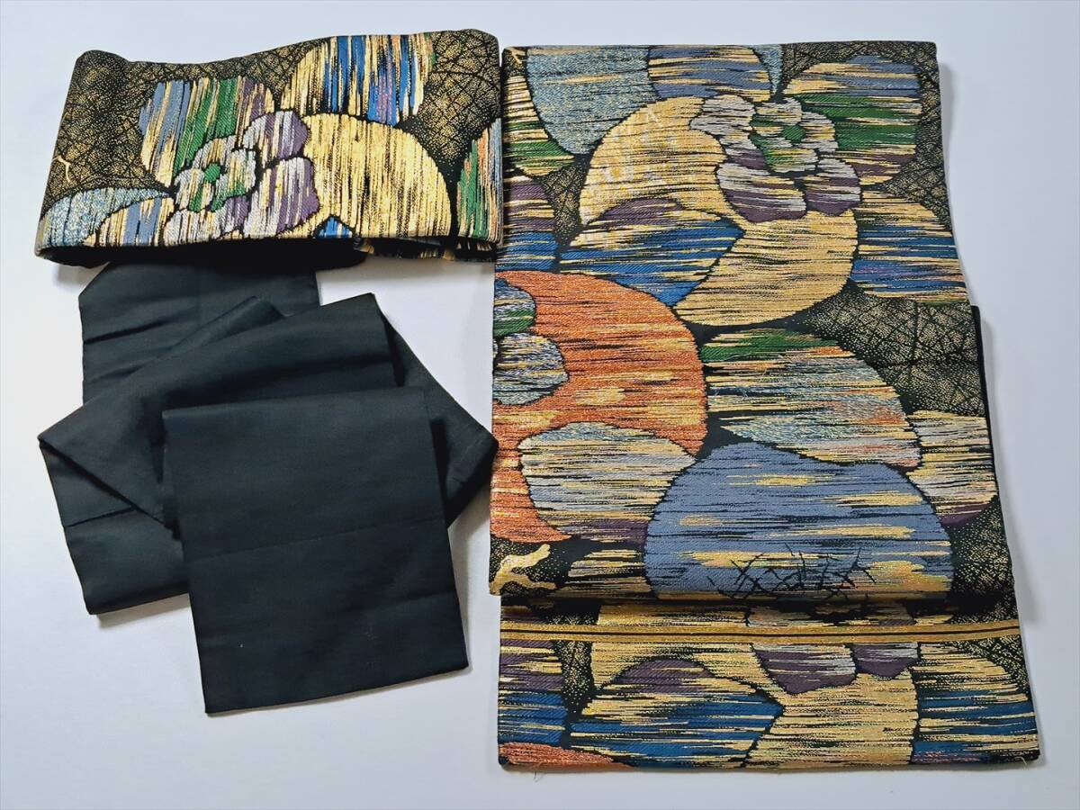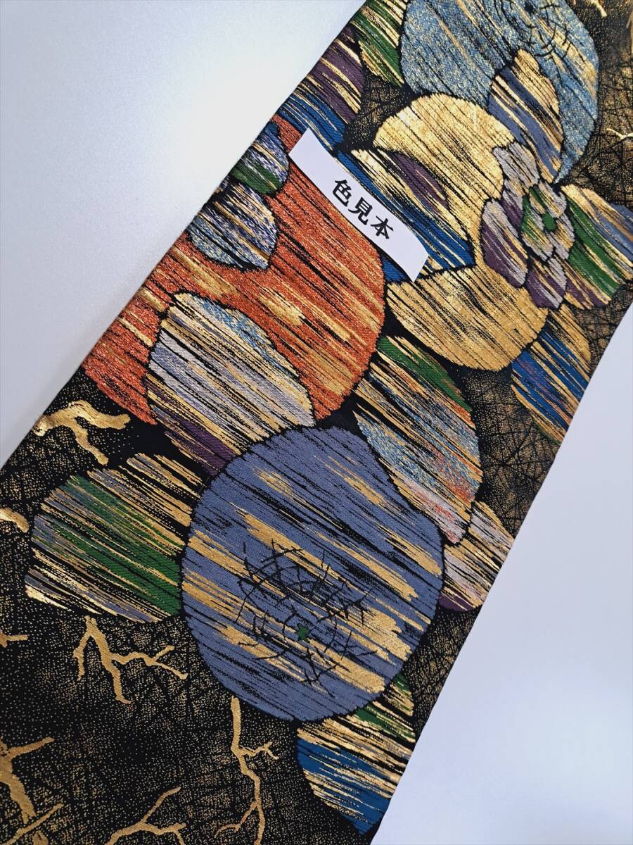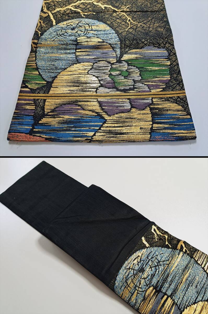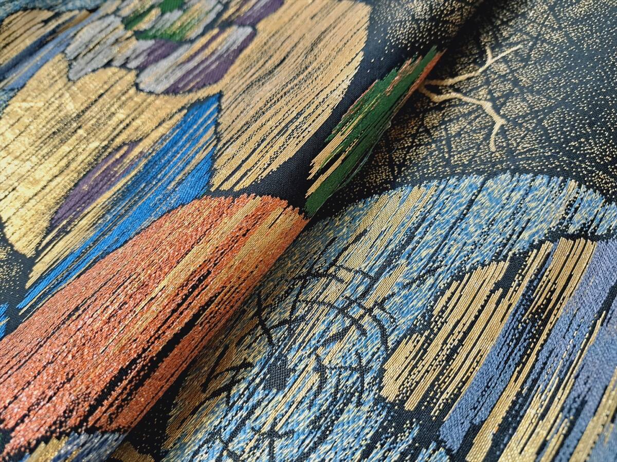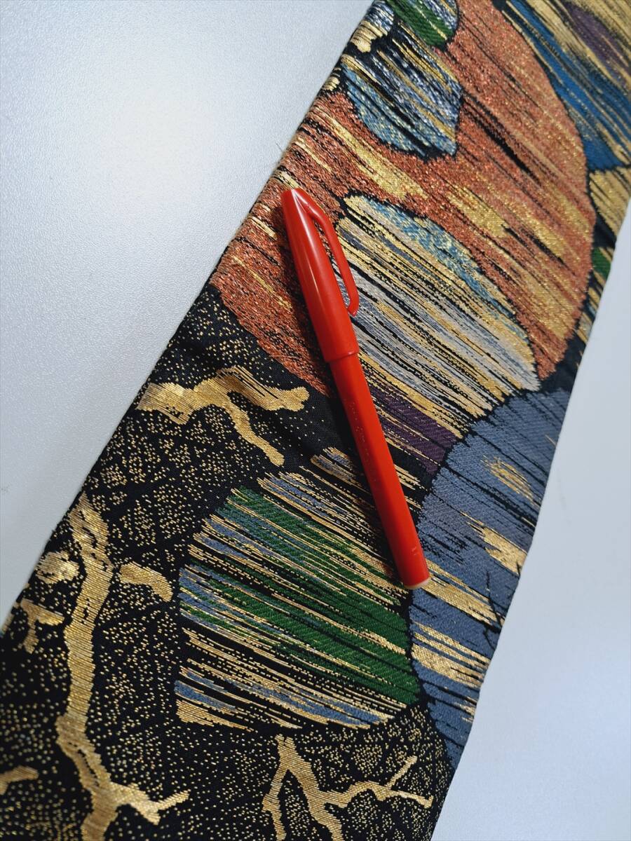 ■着物の越田■幅30.5長さ341.5 正絹 アンティーク 名古屋帯 名古屋仕立て 花 金糸 個性的 お太鼓柄 ■ひ11J08