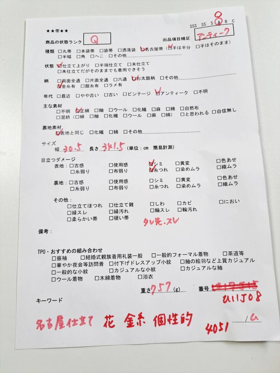 詳しくは写真2枚目の検品用紙の画像をご確認下さい。