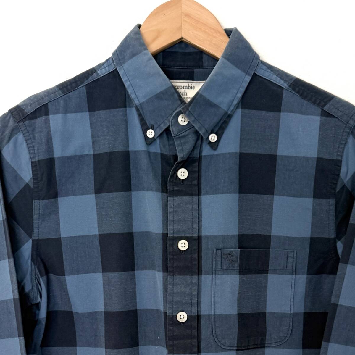 f2148ii Abercrombie & Fitch(アバクロンビー & フィッチ)  サイズXS チェックシャツ アバクロ ブルー×ブラック メンズ 綿100%