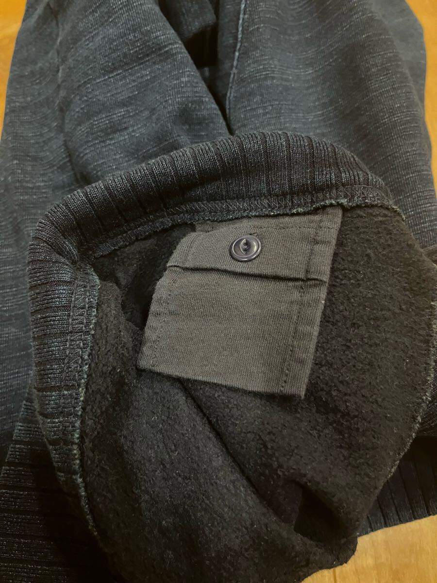 ウエストの極太針抜きリブ、ウエストと裾にドローコード、ボタン付きバックポケットという最高の拘りのディテール。