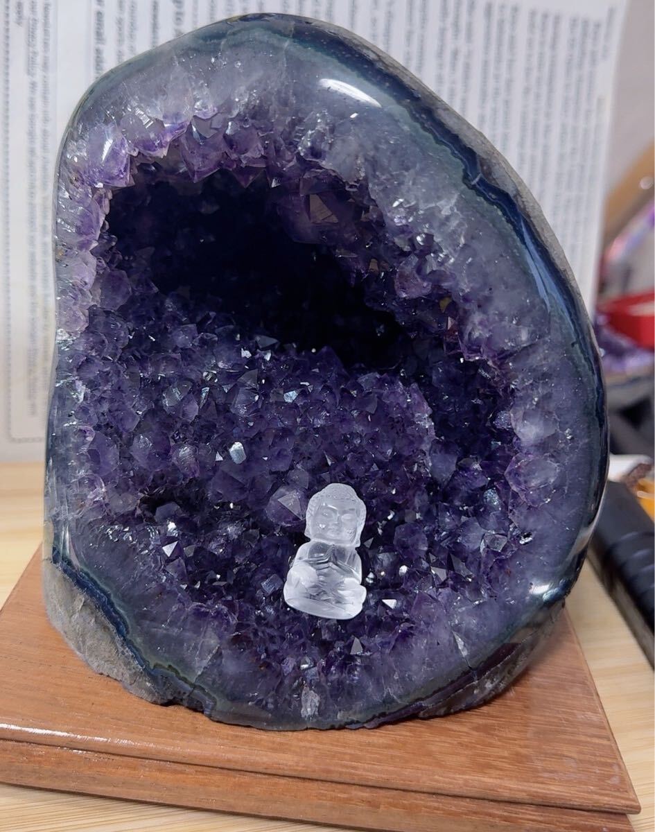 アメジスト クラスター【スダンド 木製台座付き】|クラスター・原石・石|天然石 アメジストクラスター 品質にこだわった逸品!