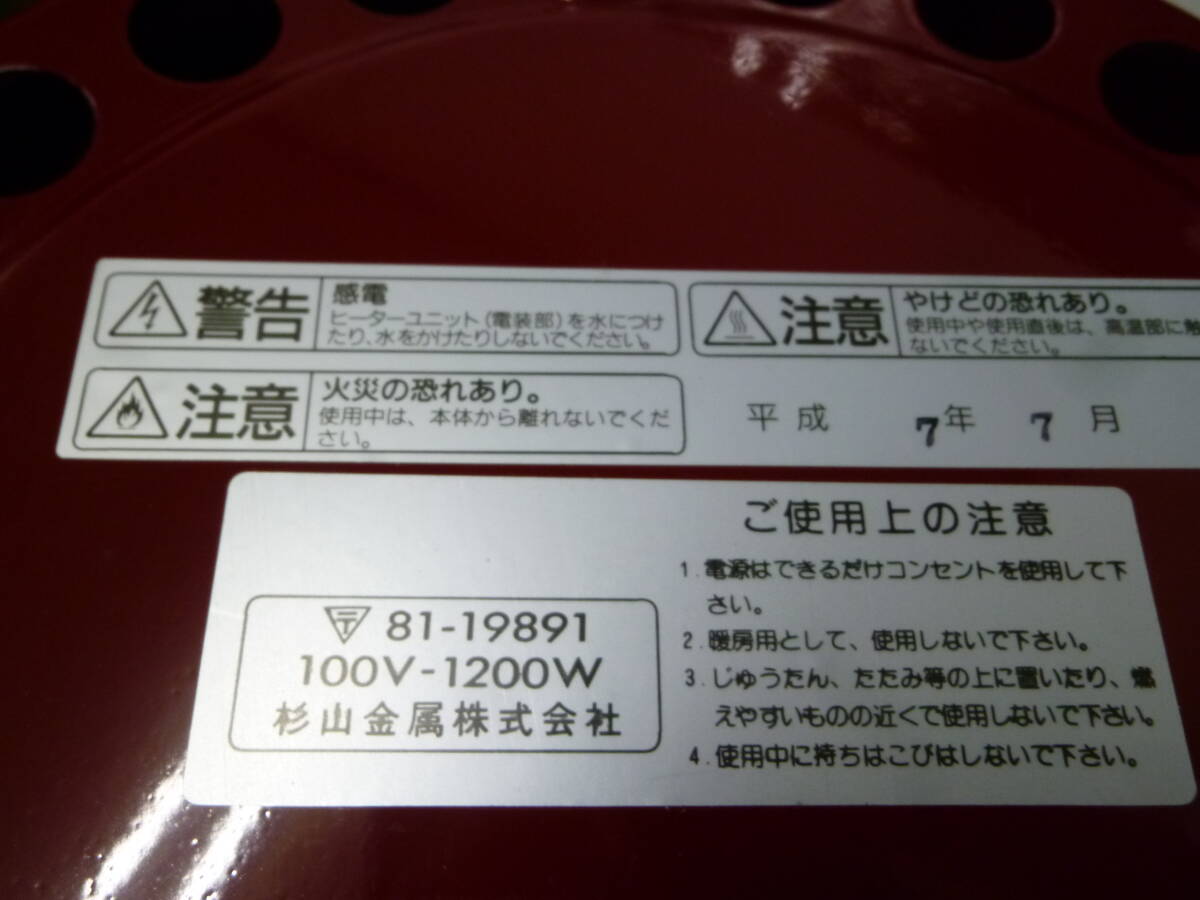 使用はしてないがコンセントに汚れ有 杉山金属グリルPRESTO【B-383】 送料無料(北海道沖縄・離島・佐川急便中継料金がかかる地域は除く)