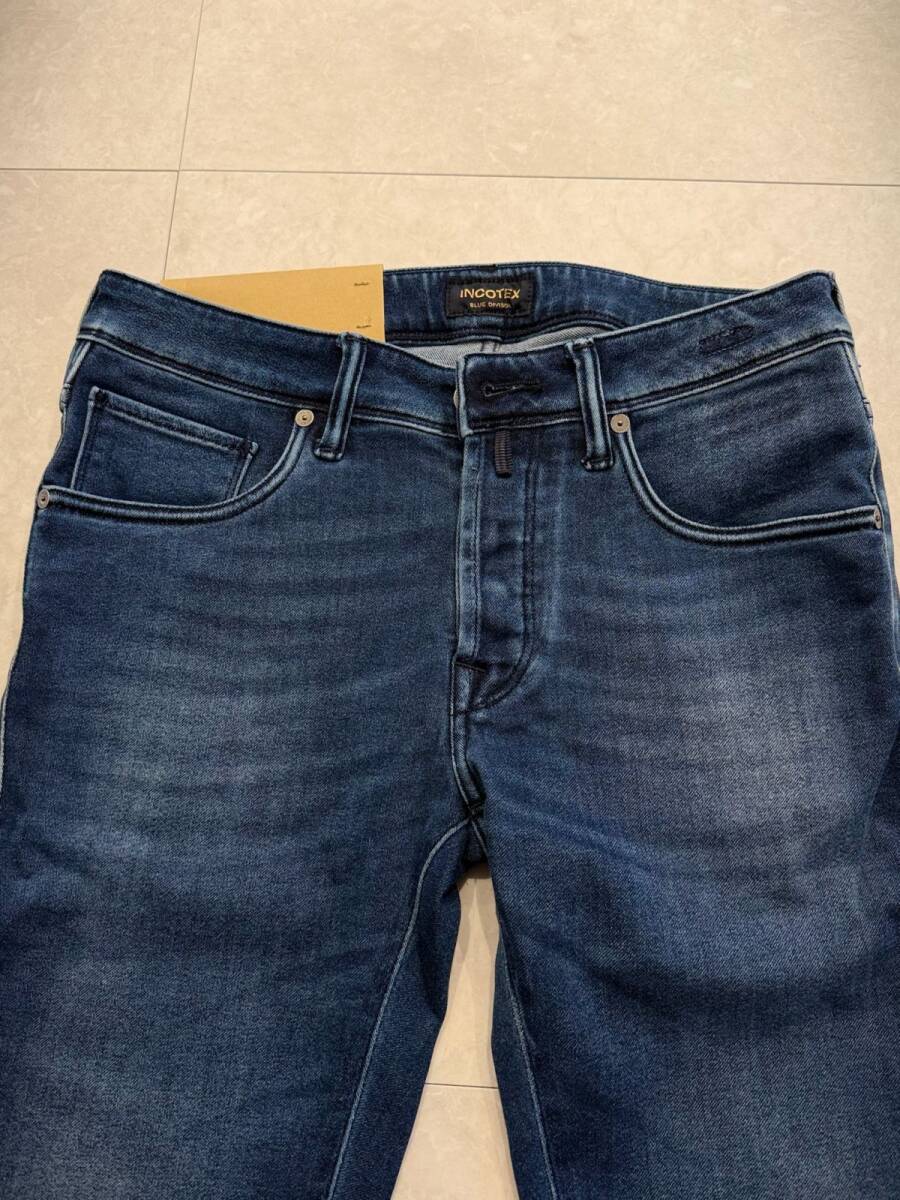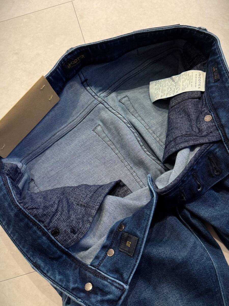 インコテックスは、1951年にイタリアのヴェネツィアで創業したパンツ専業のブランドです。 伝統的なテーラードの技術に裏打ちされた履き心地の良さが特徴です。 一貫したスタイルの世界と不滅のカジュアルエレガンスを極めるスローウエアブランドのひとつINCOTEXが2022年SSから新たに展開するINCOTEX BLUE DIVISION。 随所にINCOTEXのこだわりを感じさせるサルトリアルなディテールが特徴なラグジュアリーデニムラインで、ウエスマンのバイヤスやハイバック仕様などサルトリアルな仕立ての技術による、より立体的かつ美しいパターンと選りすぐった上質な素材を最新の縫製と工学的技術を組み合わせて仕立てました。 こちらは日本限定モデルのスリムテーパードのストレッチデニム。 INCOTEXのデニムらしく美脚性はキープしながらも履き心地の良い安心感のあるフィットになっています。 またストレッチ素材を使用している為、細身でありながら動きやすさを保っています。 ややストレッチ性が高い素材を使用した1本です。 洗いがかけられたウォッシュド素材で、穿き込むほどに経年変化を楽しめる1本です。 ブランド:INCOTEX / インコテックス サイズ:29 素材:コットン89% ポリエステル8% ポリウレタン3% ウエスト:78cm 股上:22cm 股下:76cm わたり:27cm 裾幅:16cm ※実寸値となりますが誤差はご了承ください。 ※迅速なお取引を心がけさせていただいております。オークション終了より24時間以内にご連絡をいただけない場合、土日祝日を除き48時間以内にお支払い手続きをいただけない場合は、お取引の意思なしと判断させていただき取引キャンセルとさせていただきます。 万が一上記が不可の場合は事前にご連絡いただくか、入札をお控えいただきますようお願い申し上げます。 ※なるべく現物に近いお色味で撮影するよう心掛けておりますが、閲覧環境の違い等によって違いが出る場合があります。 差し替えトラブルを避ける意味でも上述した旨含め、イメージと違う等での返品は受け付けておりません。 百貨店並みのサービスを求める方や神経質な方の入札はお控えいただきますようお願い申し上げます。 |