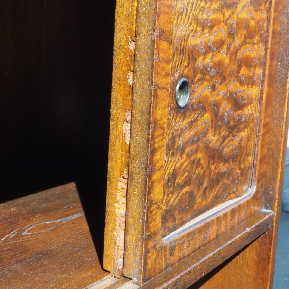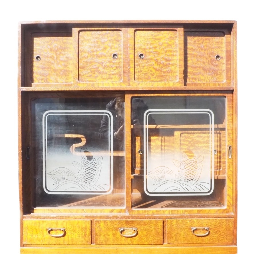 鯉のデザインが施されたガラス戸に美しい木目の無垢材が使用された味わい深い逸品です!