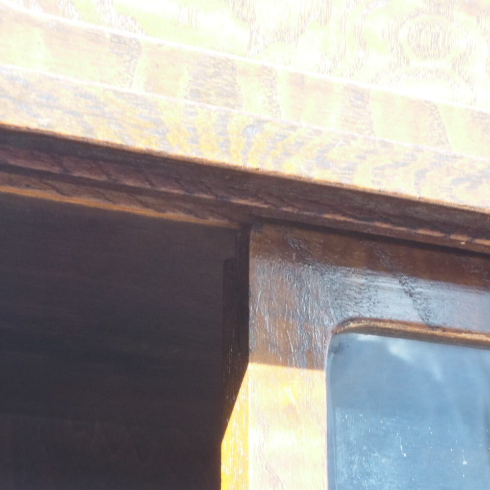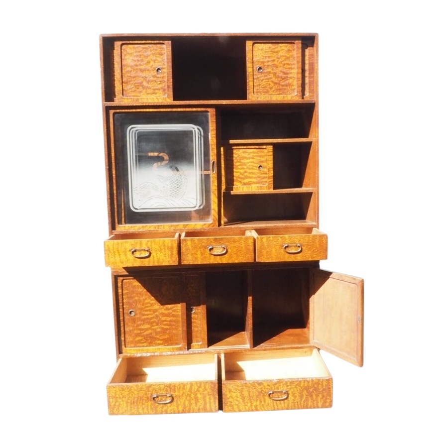 大正〜昭和初期ビンテージ 「ガラス引戸 欅茶箪笥 水屋箪笥 飾り棚 上下重ね戸棚 古民具 」 TMK(追加)