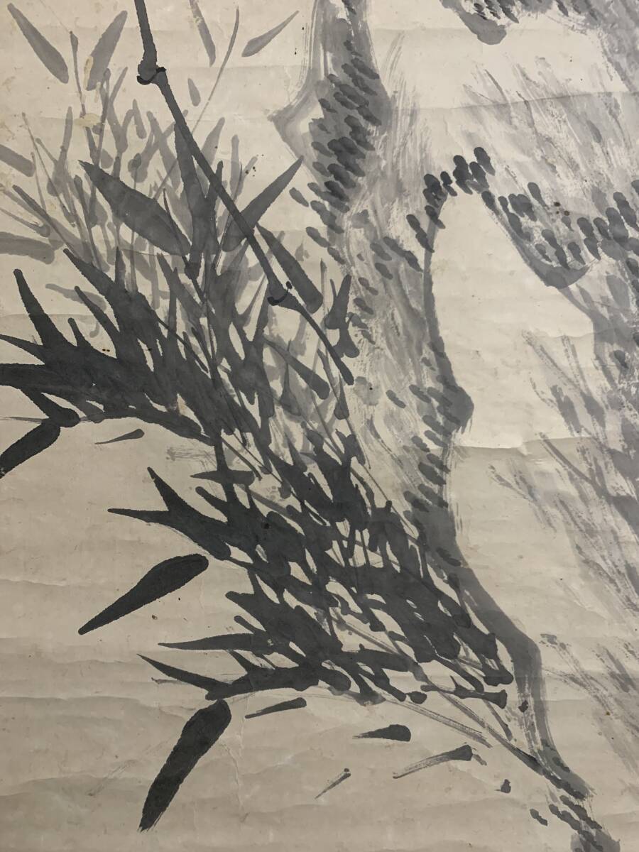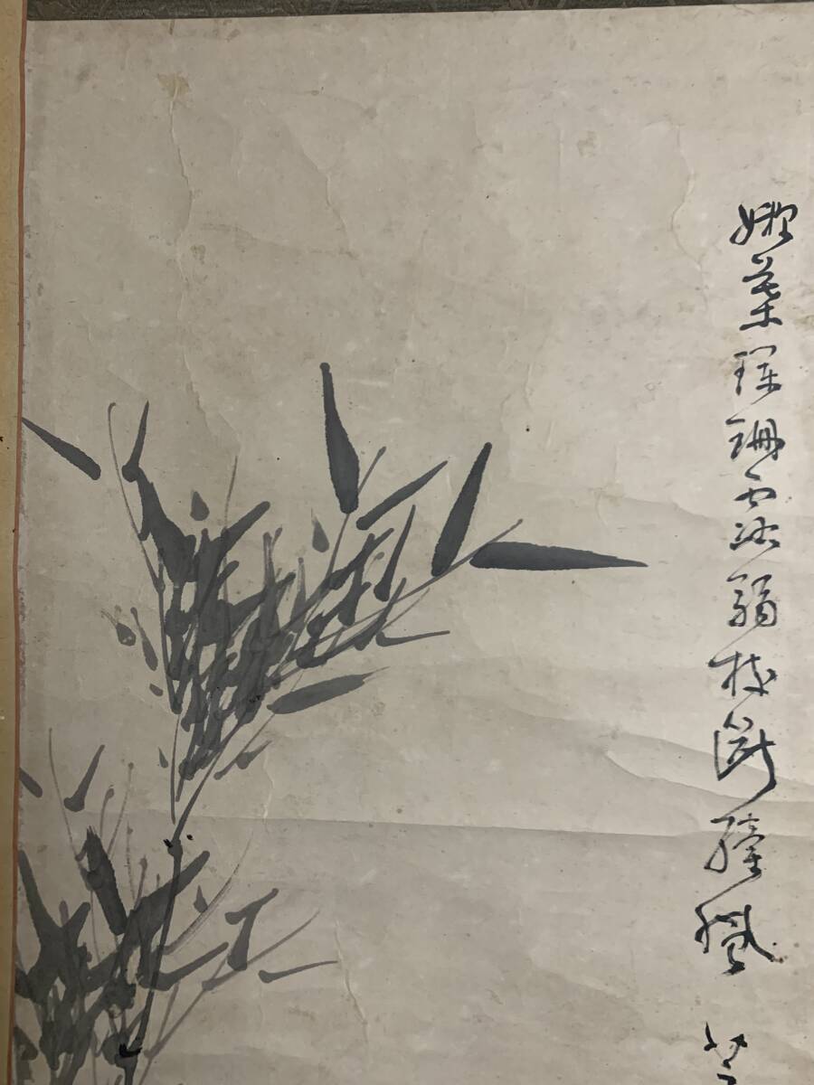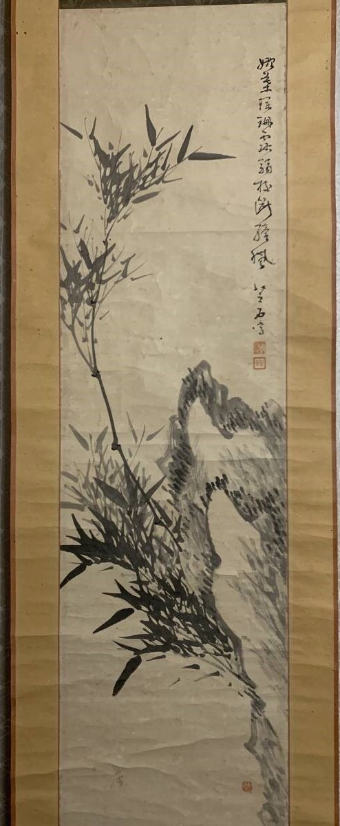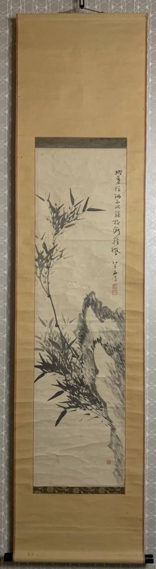 【真作】牧野芝石先生の掛軸、「墨竹図 紙本」です。箱はありません。