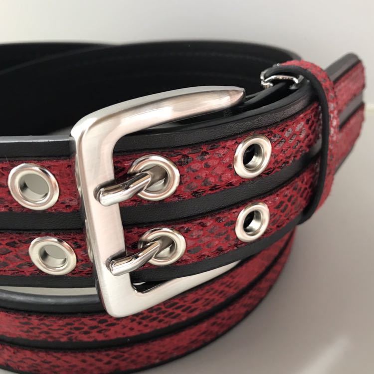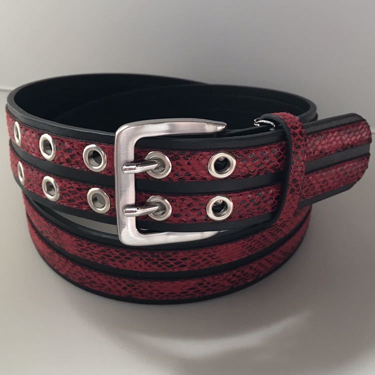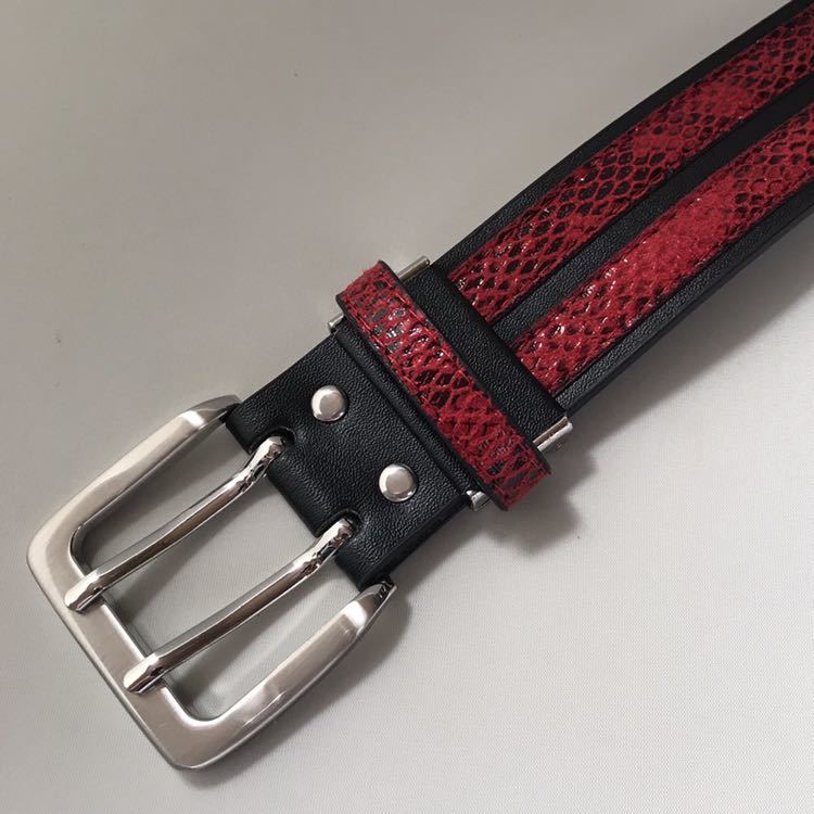 2本ピンのバックルとヘビ柄がインパクトのあるカッコイイベルトです。