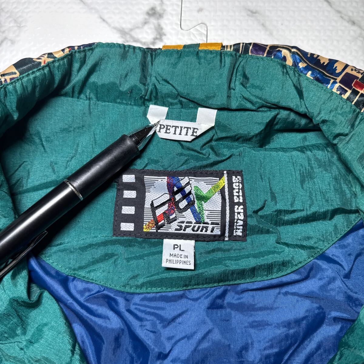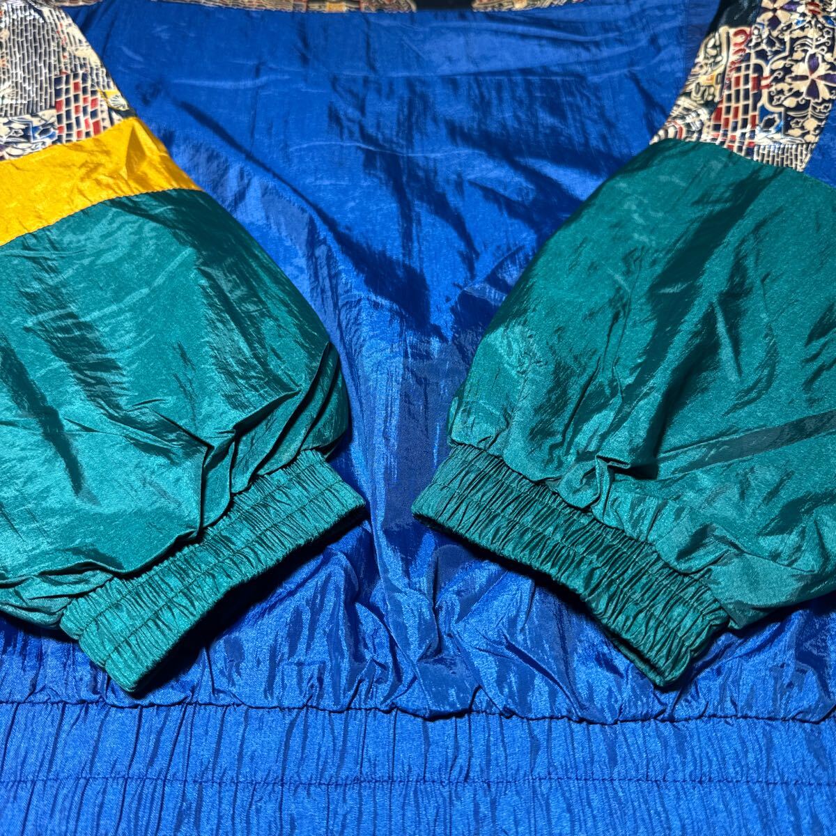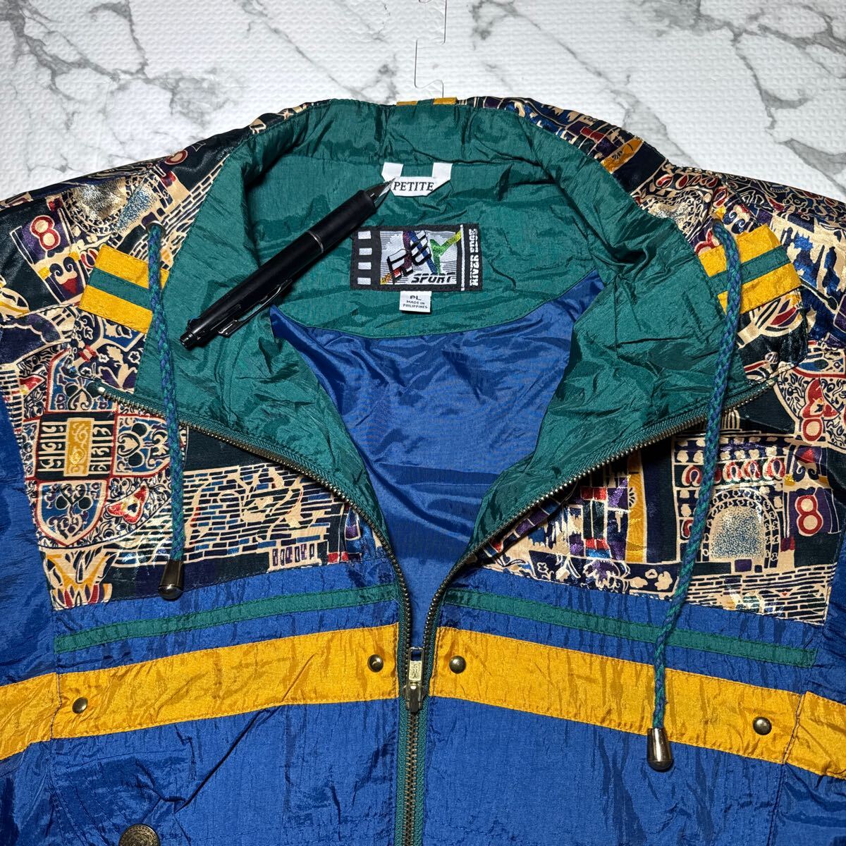 商品概要 : 長袖 ナイロンジャケット 総柄 刺繍 人気古着 ビンテージ USA レトロ 90s 80s