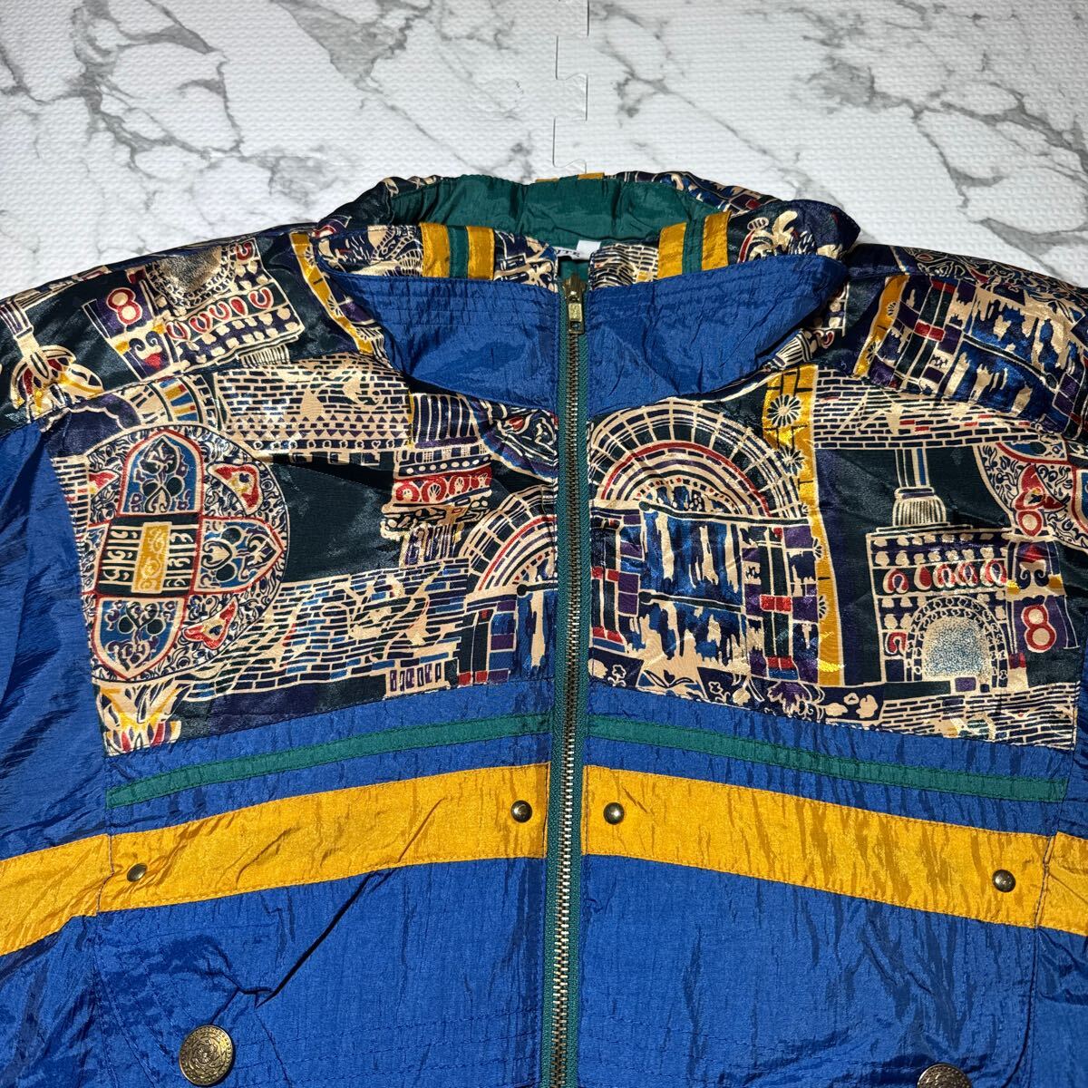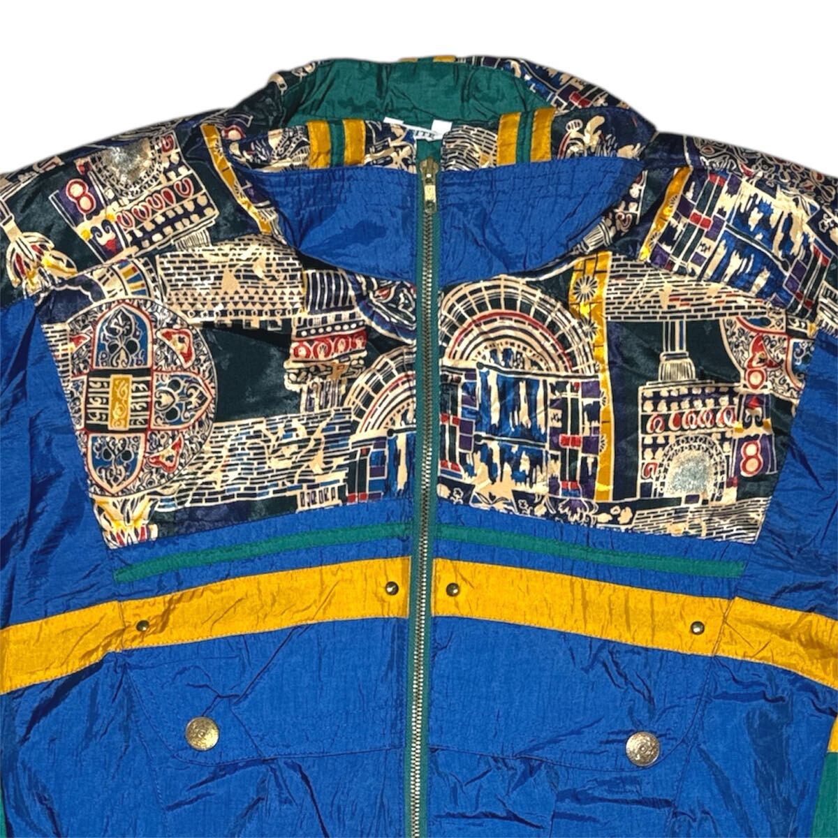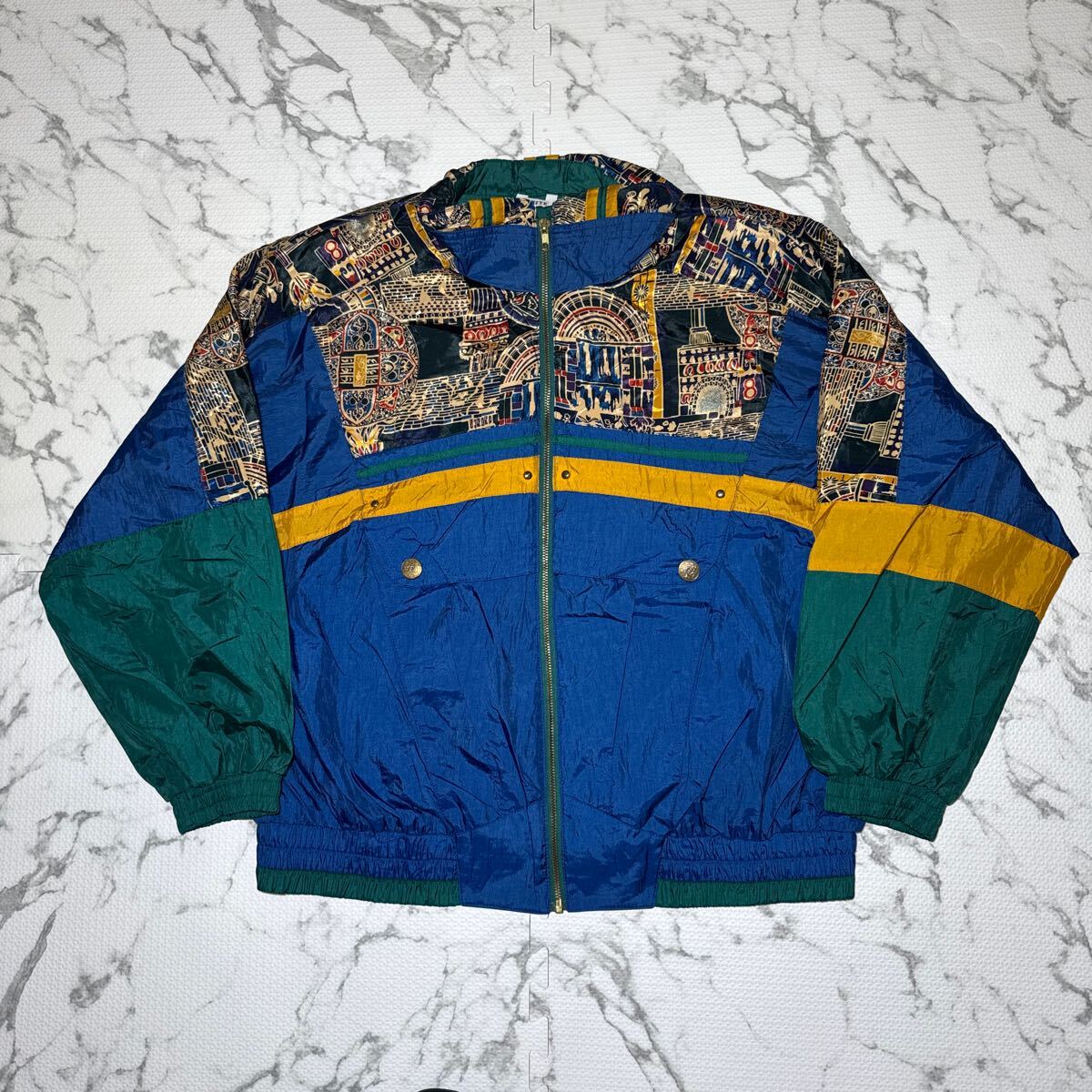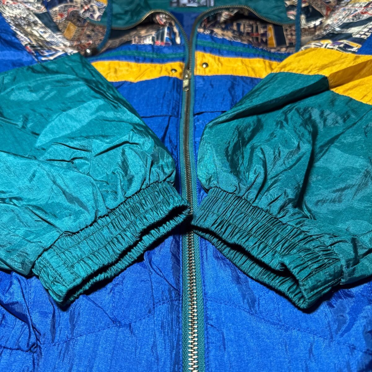 商品概要 : 長袖 ナイロンジャケット 総柄 刺繍 人気古着 ビンテージ USA レトロ 90s 80s