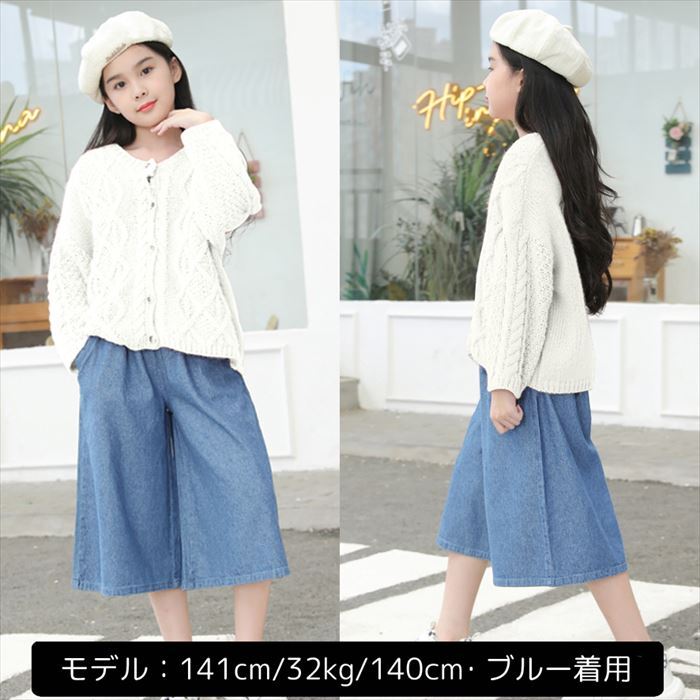 サイズ | [120cm]総丈54cm/ウエスト48cm/ヒップ46cm/股下31cm/裾幅32cm [130cm]総丈59cm/ウエスト50cm/ヒップ48cm/股下34cm/裾幅33.5cm [140cm]総丈62.5cm/ウエスト52cm/ヒップ51cm/股下37cm/裾幅35cm [150cm]総丈66cm/ウエスト55cm/ヒップ54cm/股下40cm/裾幅37cm [160cm]総丈70cm/ウエスト58cm/ヒップ57cm/股下43cm/裾幅39cm |