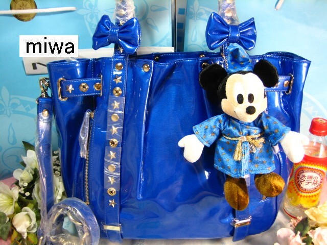バッグ同素材のリボン2個&ミッキーチャームは取外てお好きな場所に付替できます。