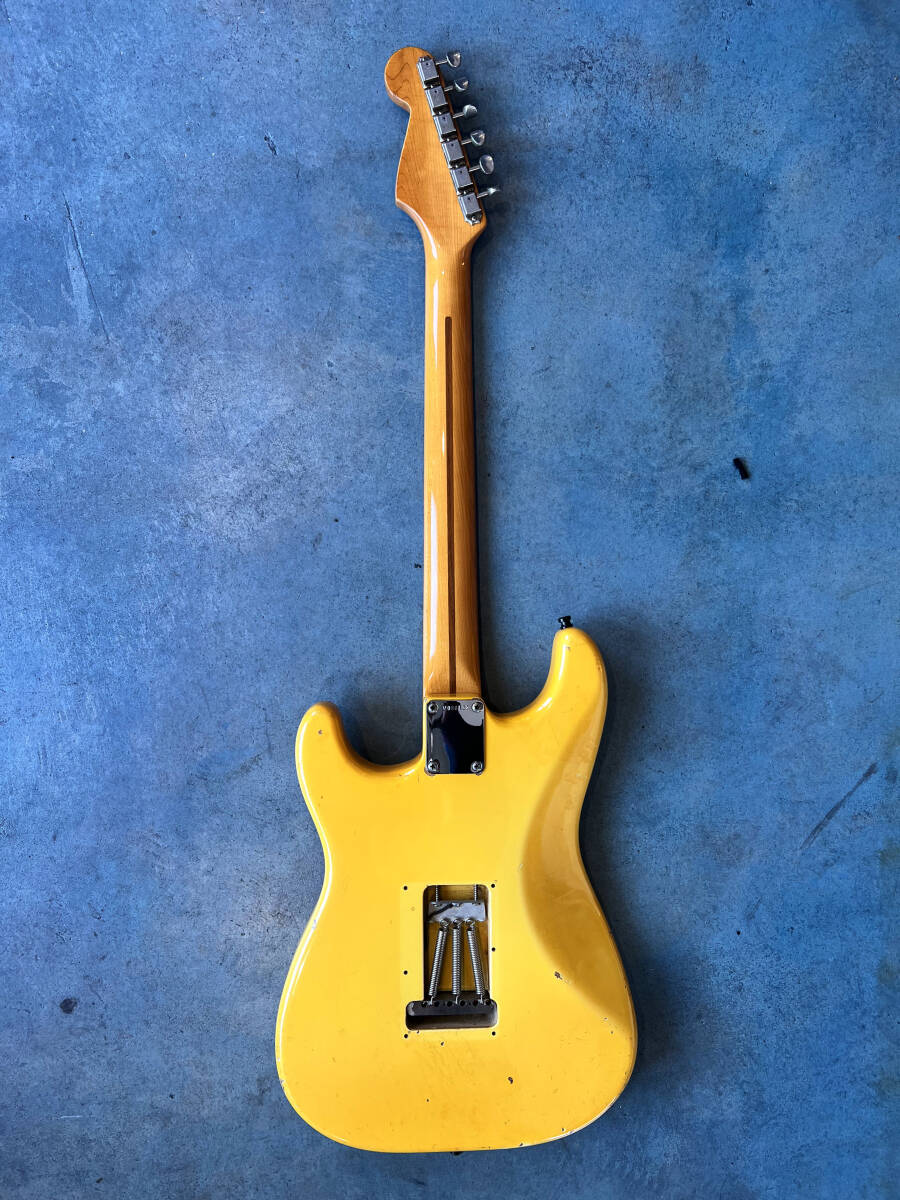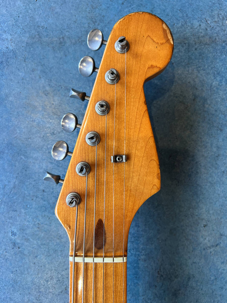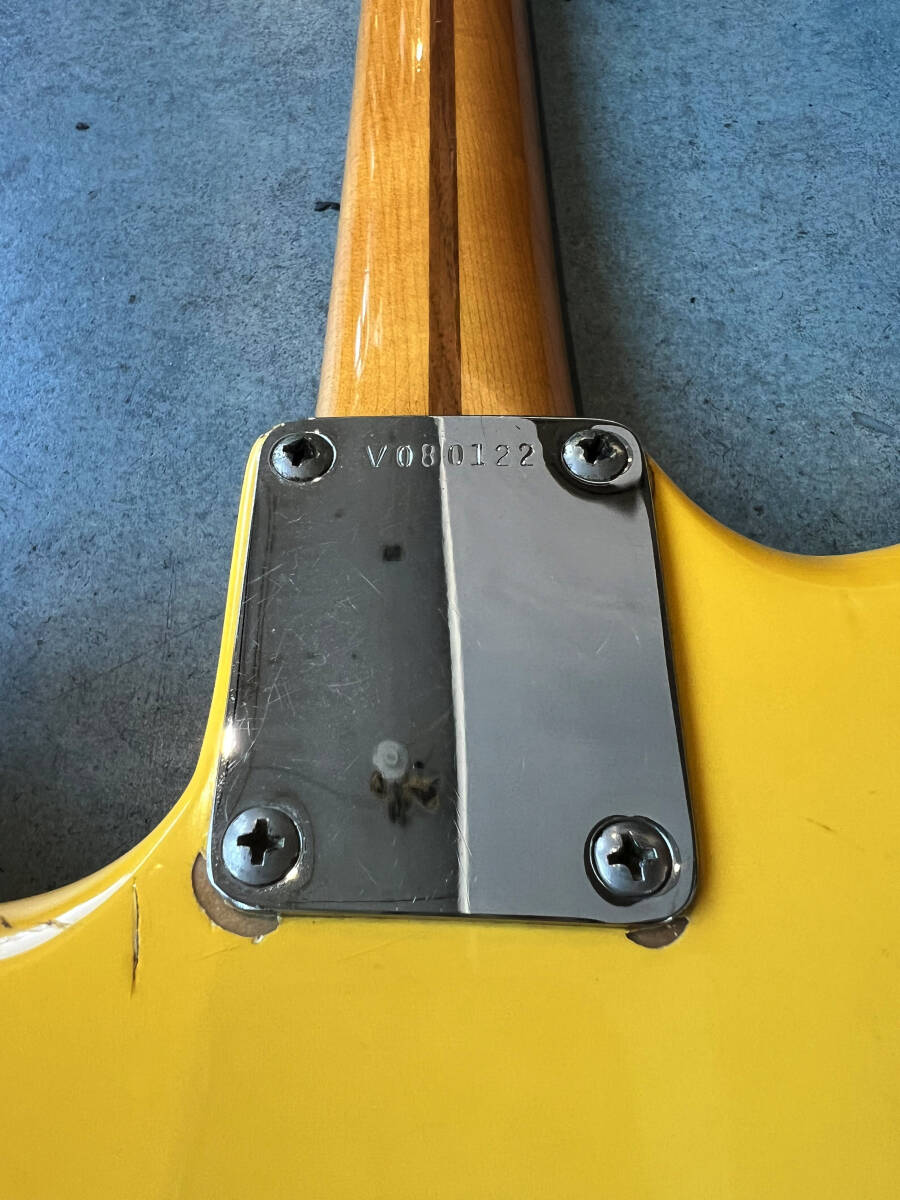 ピックガード交換・デカール剥離のカスタムが施されていますが、オリジナルパーツを揃えれば純正状態に戻すことも可能です。