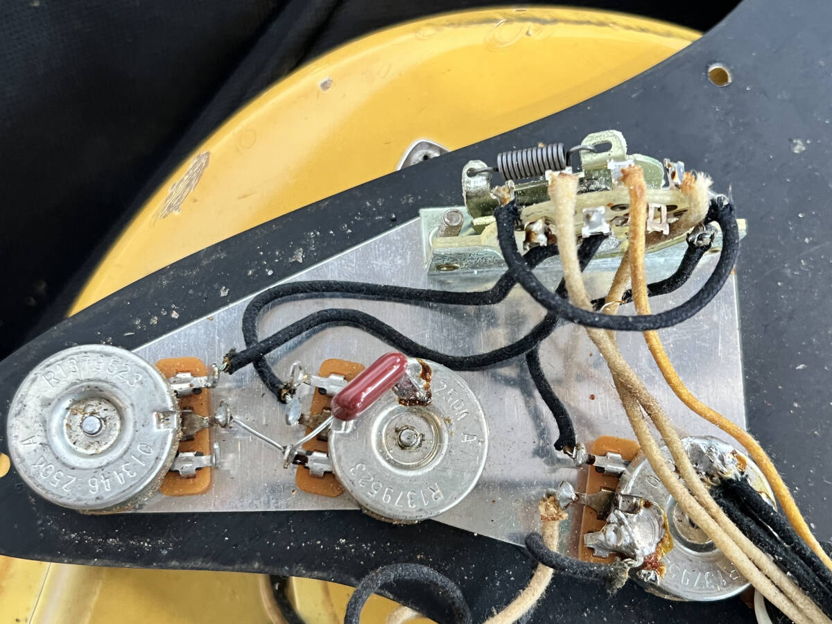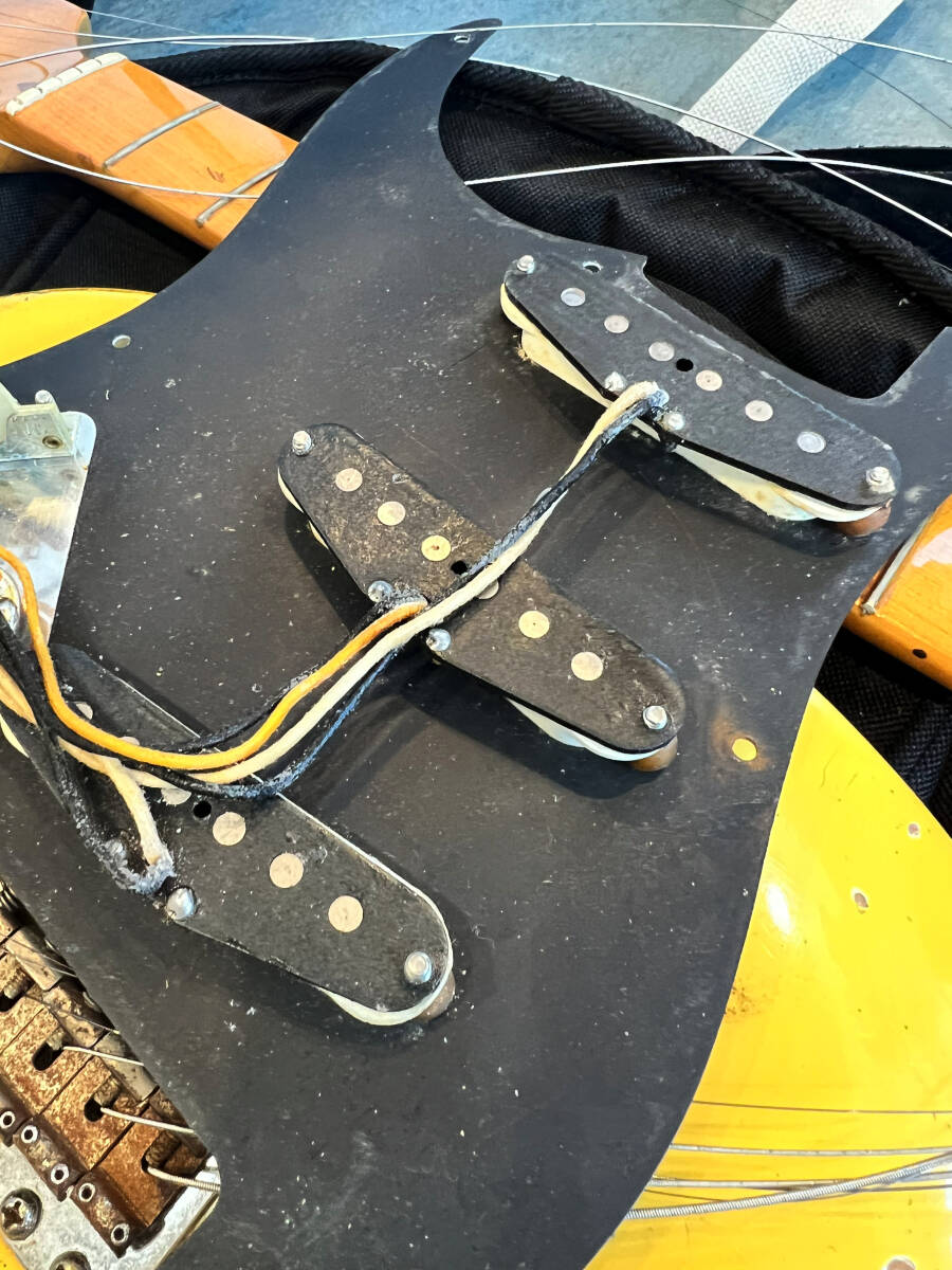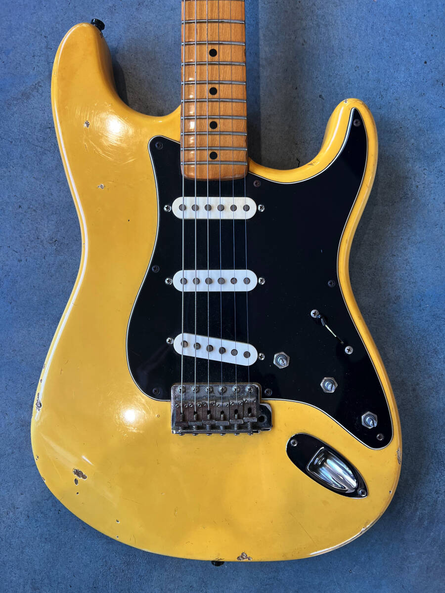 ピックガード交換・デカール剥離のカスタムが施されていますが、オリジナルパーツを揃えれば純正状態に戻すことも可能です。