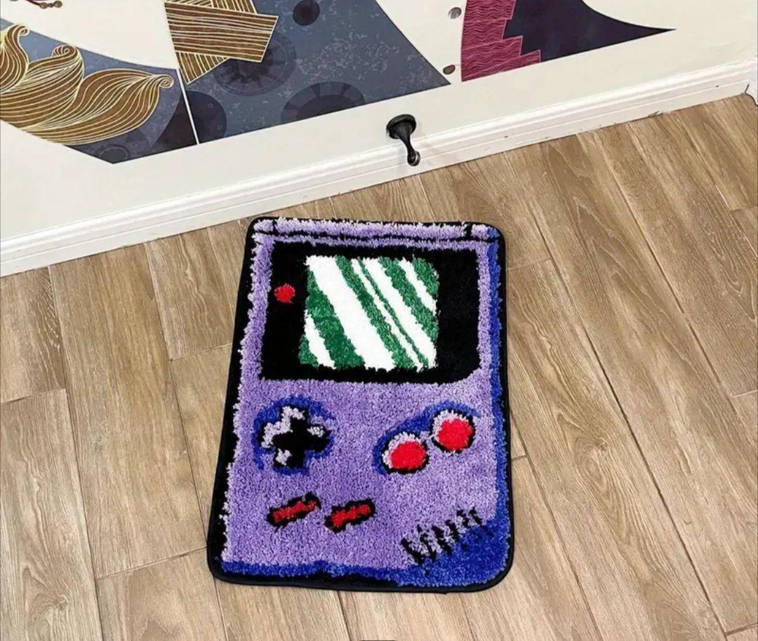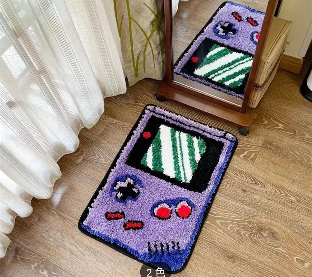1個、紫色のゲームコンソール型カーペット、柔らかく快適、滑り止め、吸収性、寝室、リビングルームの装飾、トイレ