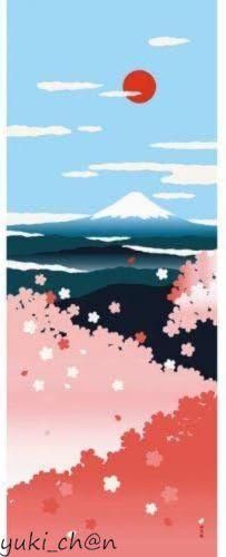 絵てぬぐい 早咲き桜と富士山 綿100% 約34cm×約90cm