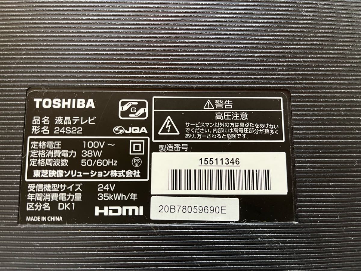 RE2962 TOSHIBA 24インチ 液晶テレビ 24S22 リモコン欠品 テレビ 液晶 モニター 通電のみ確認済み 現状品