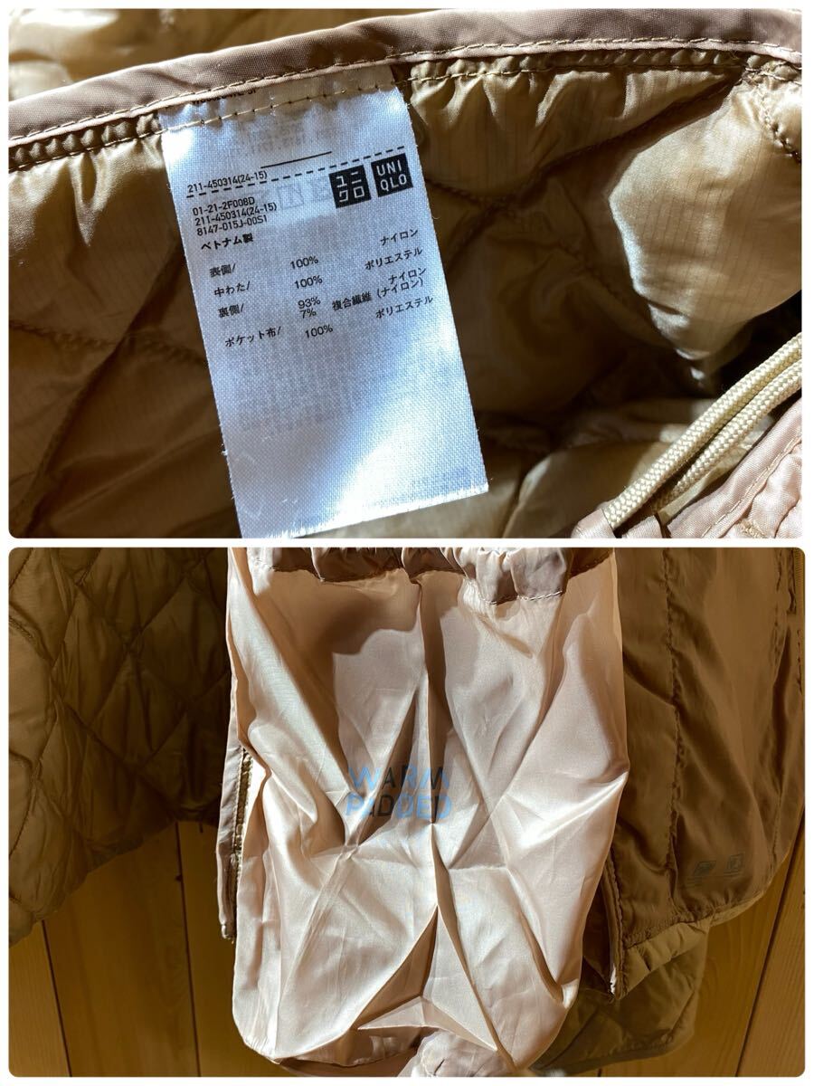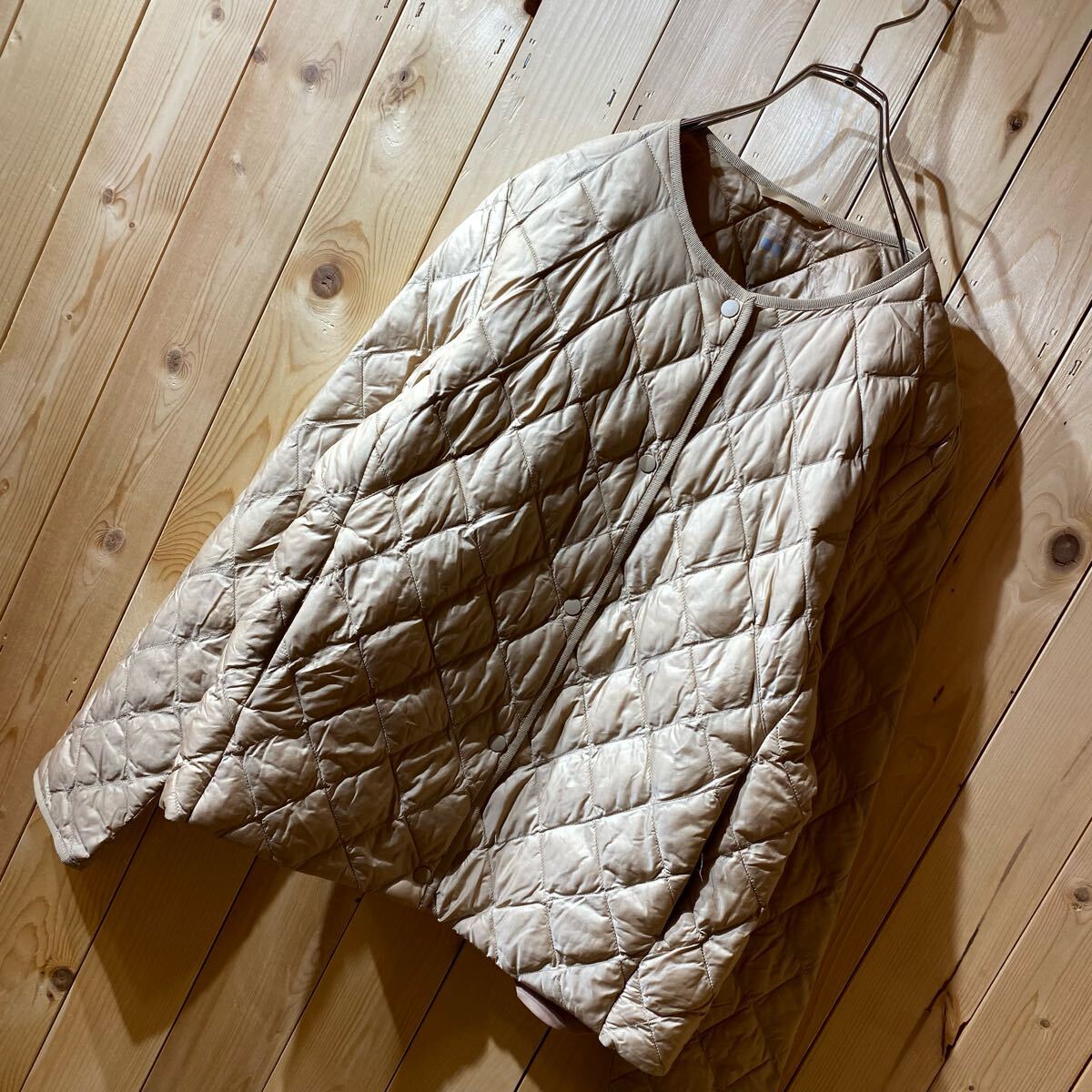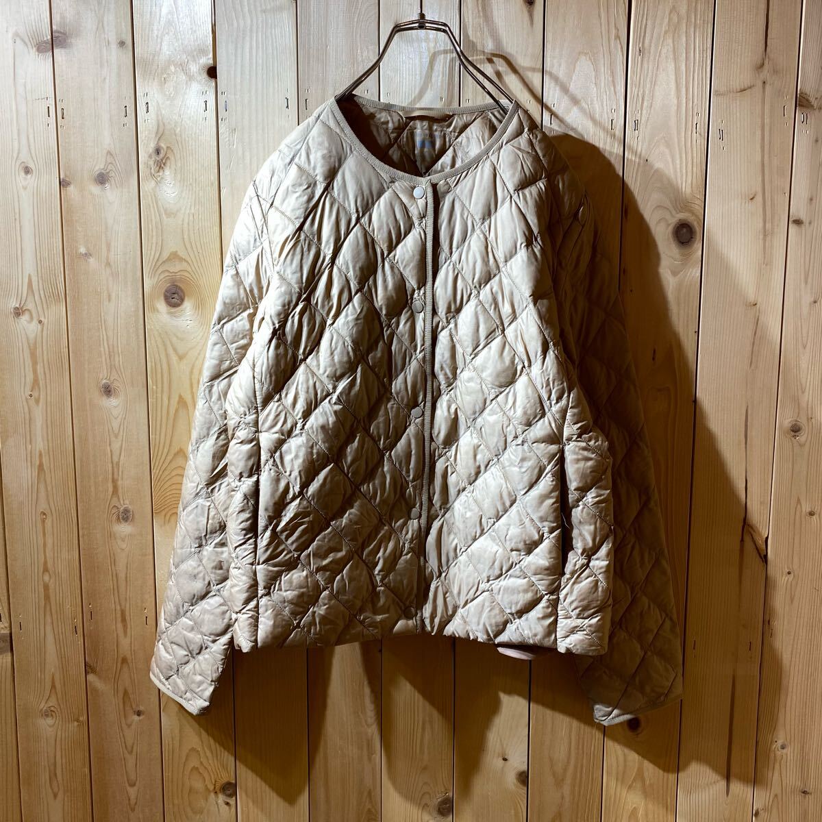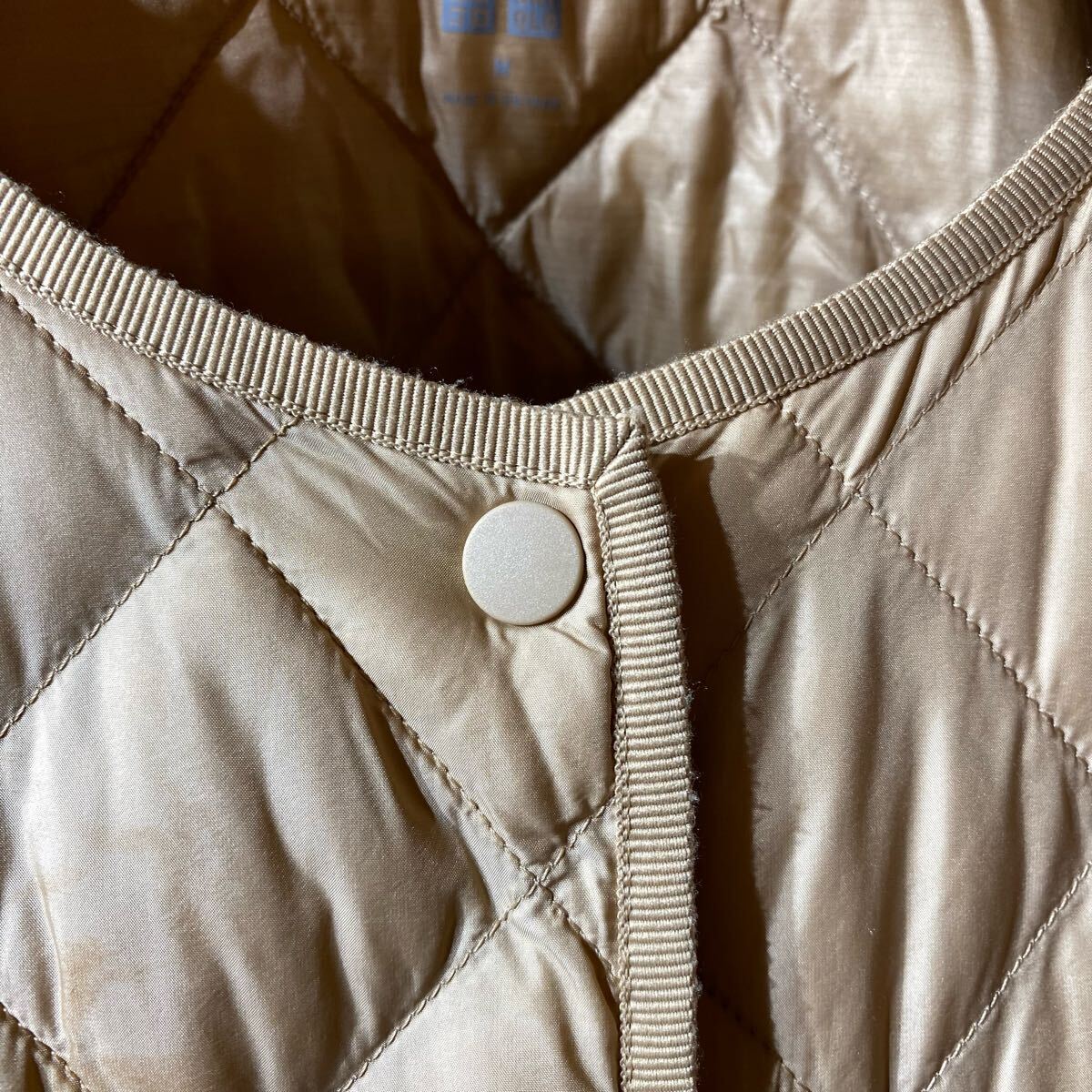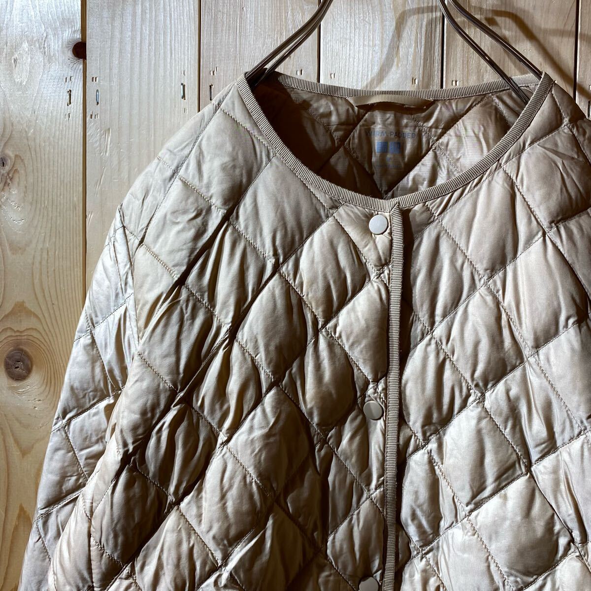 [YUK168] UNIQLO ユニクロ ウルトラライトダウン ノーカラー キルティング ジャケット ナイロン ベージュ M レディース