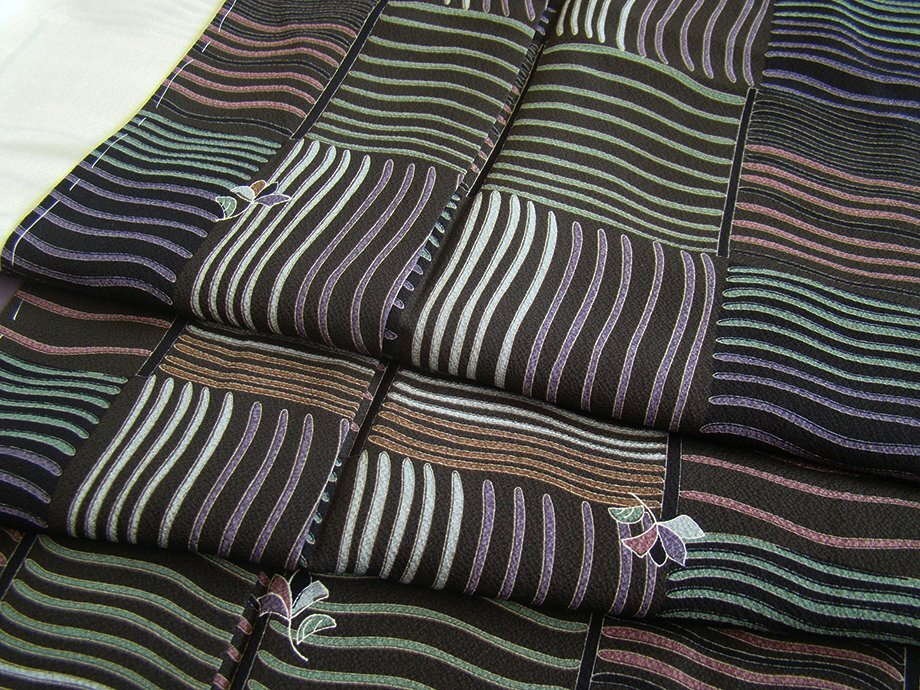 | 商品説明 | こちらのお品は「袷」ですので10月から5月までお召頂ければと思います。 とてもしなやかで滑らかな手触りの着心地良い重めの極上ちりめん地の生地、 黒茶色地に紫鼠、青鈍、灰、紅藤、茶色等の染柄に飛び柄の染柄、 八掛は藤紫色(正絹)、幅広い年代の方にお召頂けます。 |