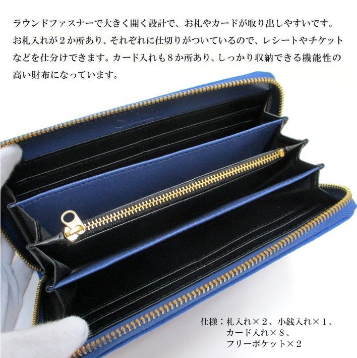 | ラウンドファスナーで大きく開く設計で、お札やカードが取り出しやすいです。 お札入れが2か所あり、それぞれに仕切りがついているので、レシートやチケットなどを仕分けできます。 カード入れも8か所あり、しっかり収納できる機能性の高い財布になっています。 アルカンターラ生地で触り心地が良く、高級感があります。 表側の素材は、スーパーカーや高級車の内装にも使用されているアルカンターラという、クルマ好きには高級内装素材として知られている人工革です。 スエードに似た高級感ある見た目ですが、より耐久性や耐光性、水もはじきやすく、難燃性が極めて優れていると同時に肌触りの良い素材です。 液体の吸収力が低く、水に濡れても乾けば元通りの風合いを取り戻します。汚れ落としが簡単です。 耐久性に優れているので長年お使いいただけます。人と違ったものを持ちたい方にオススメです。 誕生日プレゼント・クリスマス・バレンタイン・父の日・母の日などの贈り物にも最適です。 ■カラー:BLUE(ブルー) ■素材:外側 アルカンターラ、内側 牛革 ■サイズ(約):横19.5cm×縦11cm×マチ3.5cm ■重量:約200g ■仕様:札入れ×2、小銭入れ×1、カード入れ×8、フリーポケット×2 ※一部共通画像使用 ※ご注意※革は自然が造り出した理想的な繊維です。 自然由来の素材のため革には細かなシワや傷跡・トラ等が存在する場合があります。 これらは本革である証拠であり、革本来の特長であり、魅力でもあります。 ※新品ではございますが製造上の過程により商品によっては細かな傷やへこみ、剥げ等がある場合が御座います。 また、多少の縫製のゆがみ・ノリの付着がある場合がございます。 ※ご覧のモニターやプラウザの設定、照明等により、画像と実物の色合いが、若干異なる場合が御座います。 予めご理解頂いた上でご購入下さい。 | |
