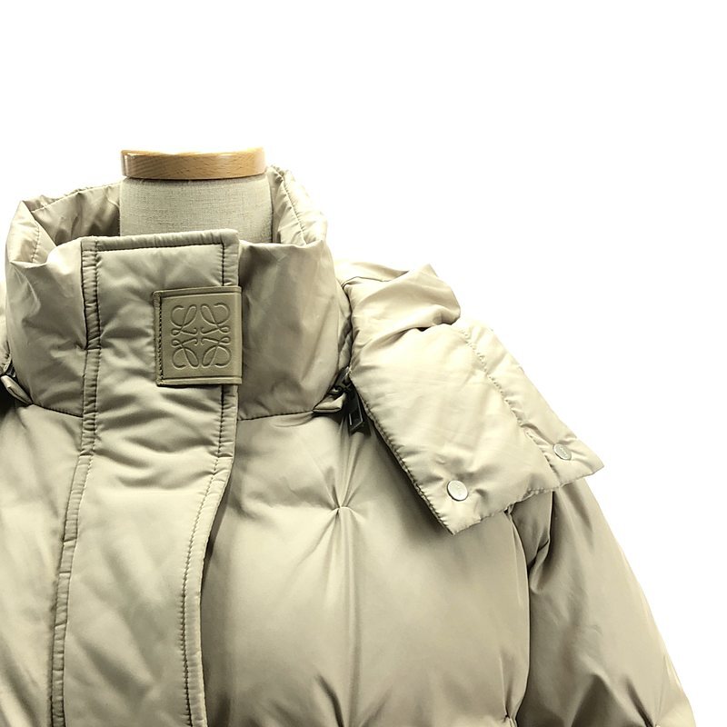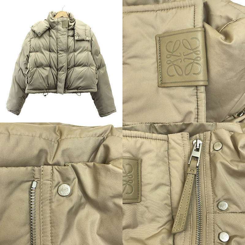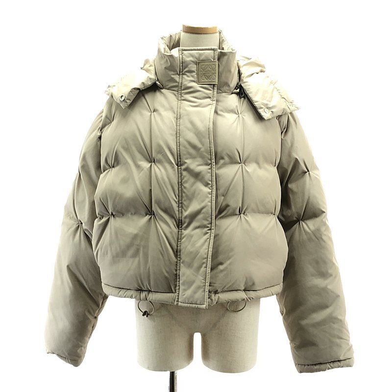 【美品】 LOEWE / ロエベ | アナグラム レザーパッチ クロップド ダウン パファージャケット / フード着脱可 | 34 | ベージュ | レディース