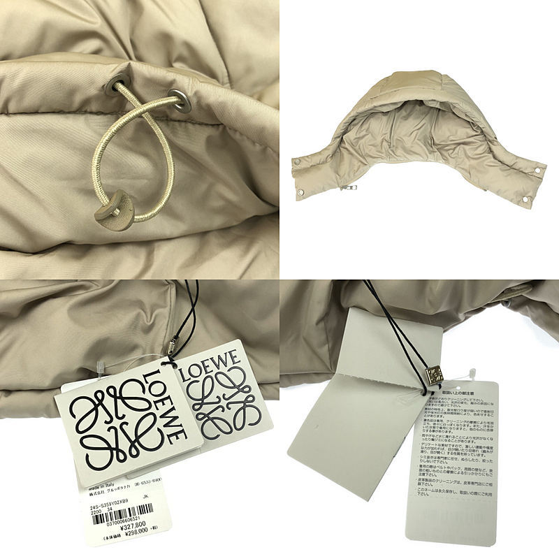 【美品】 LOEWE / ロエベ | アナグラム レザーパッチ クロップド ダウン パファージャケット / フード着脱可 | 34 | ベージュ