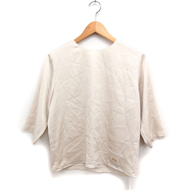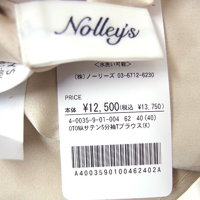 未使用品 ノーリーズ Nolley's タグ付き 6分袖 ブラウス 丸首 無地 40 ベージュ /FT21 レディース