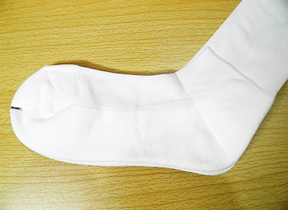 つま先・足底・かかと・アキレス腱部分に綿糸で厚みをつけて、補強されています。