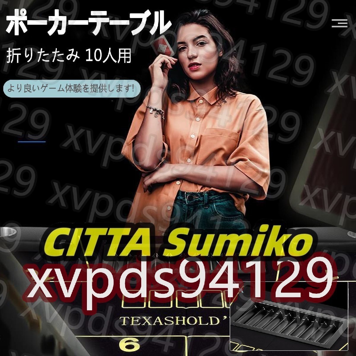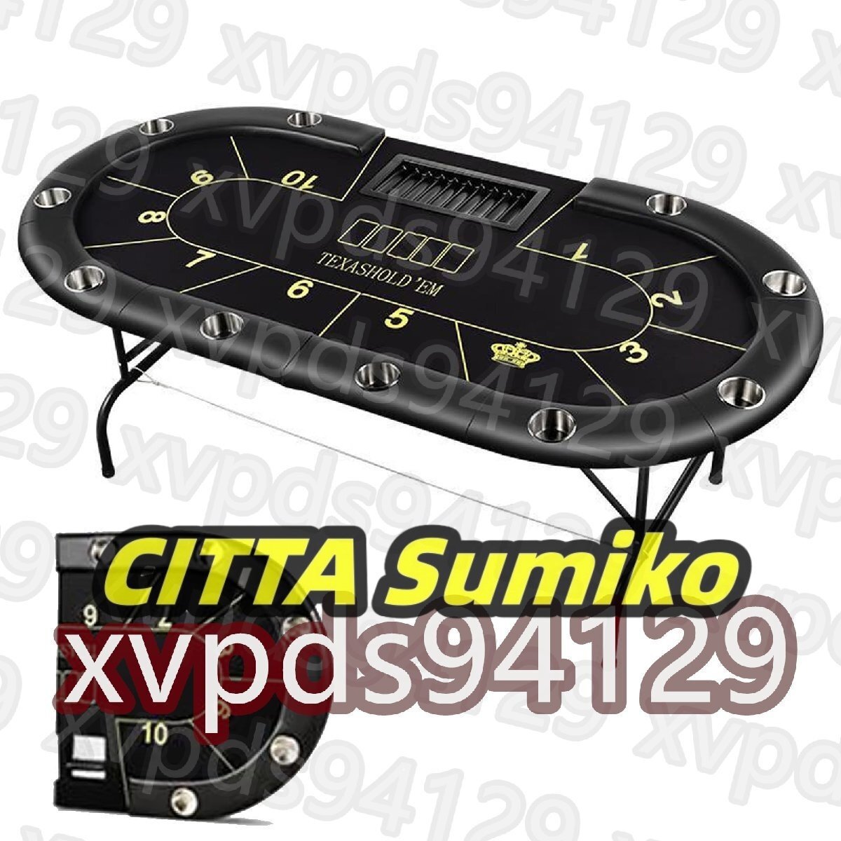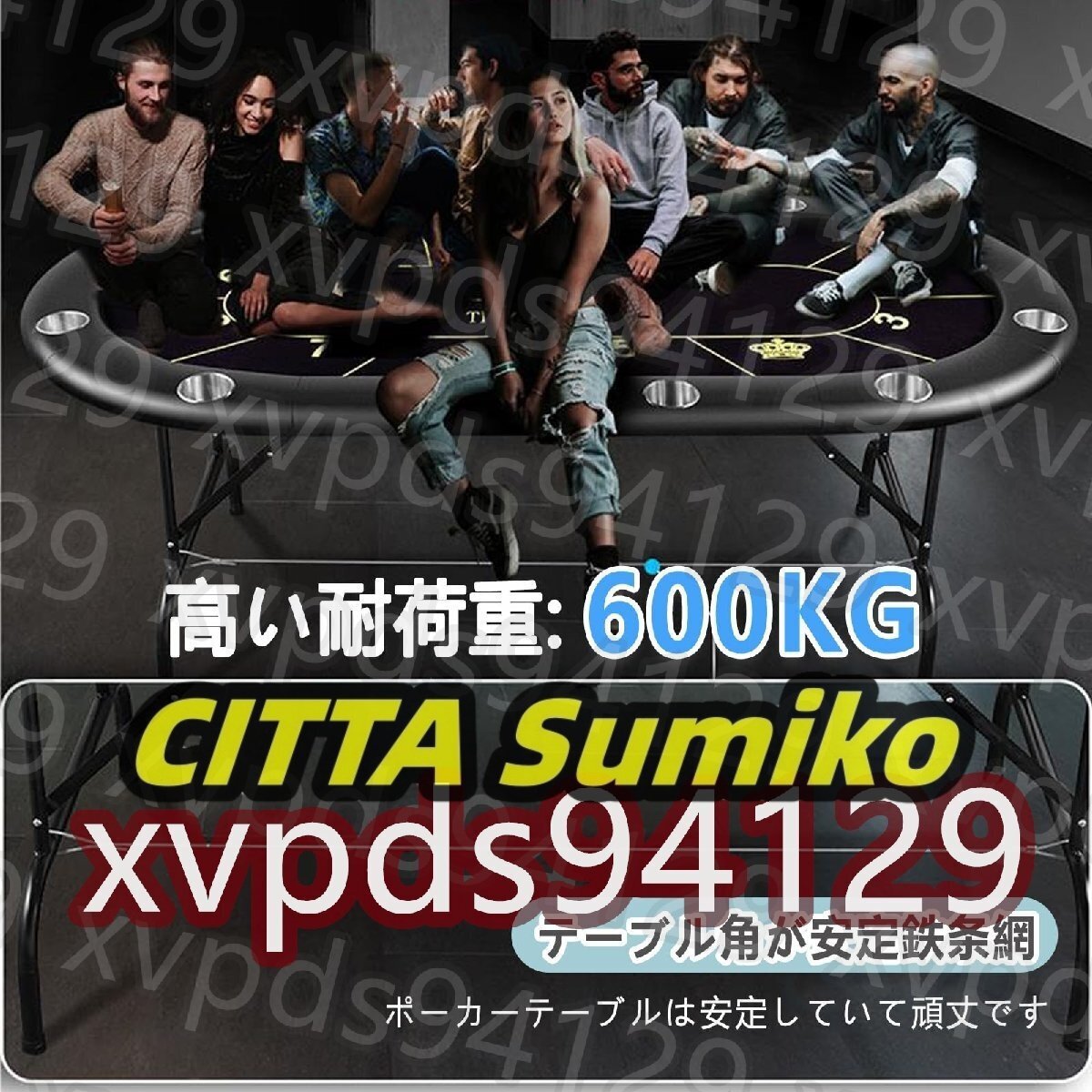 ポーカーテーブル 折りたたみ 10人用 高級 テキサスホールデムポーカーテーブル 楕円形 広い空間 カップホルダー付き 持ち運び可能 組み立て不要 213×106cm