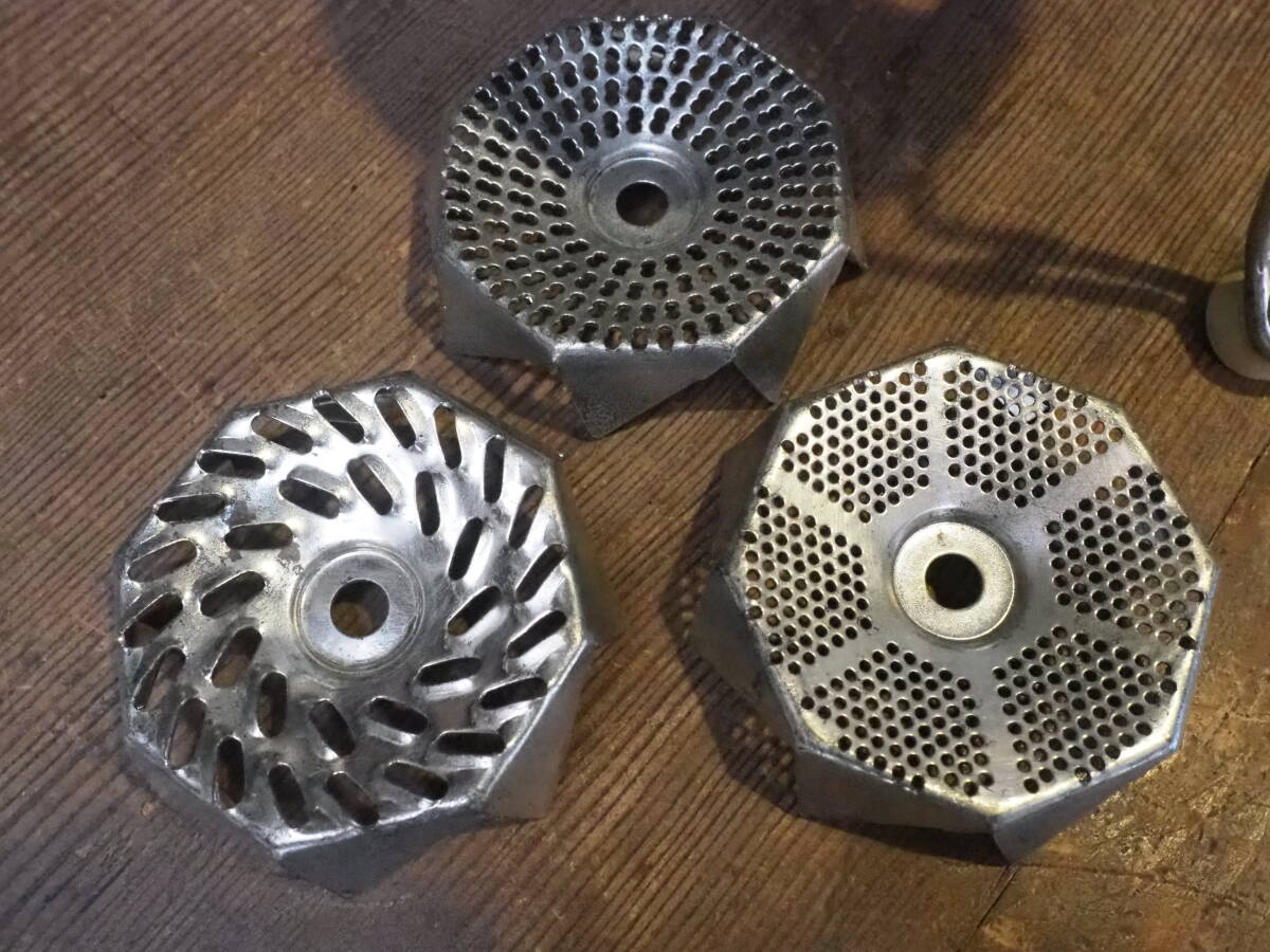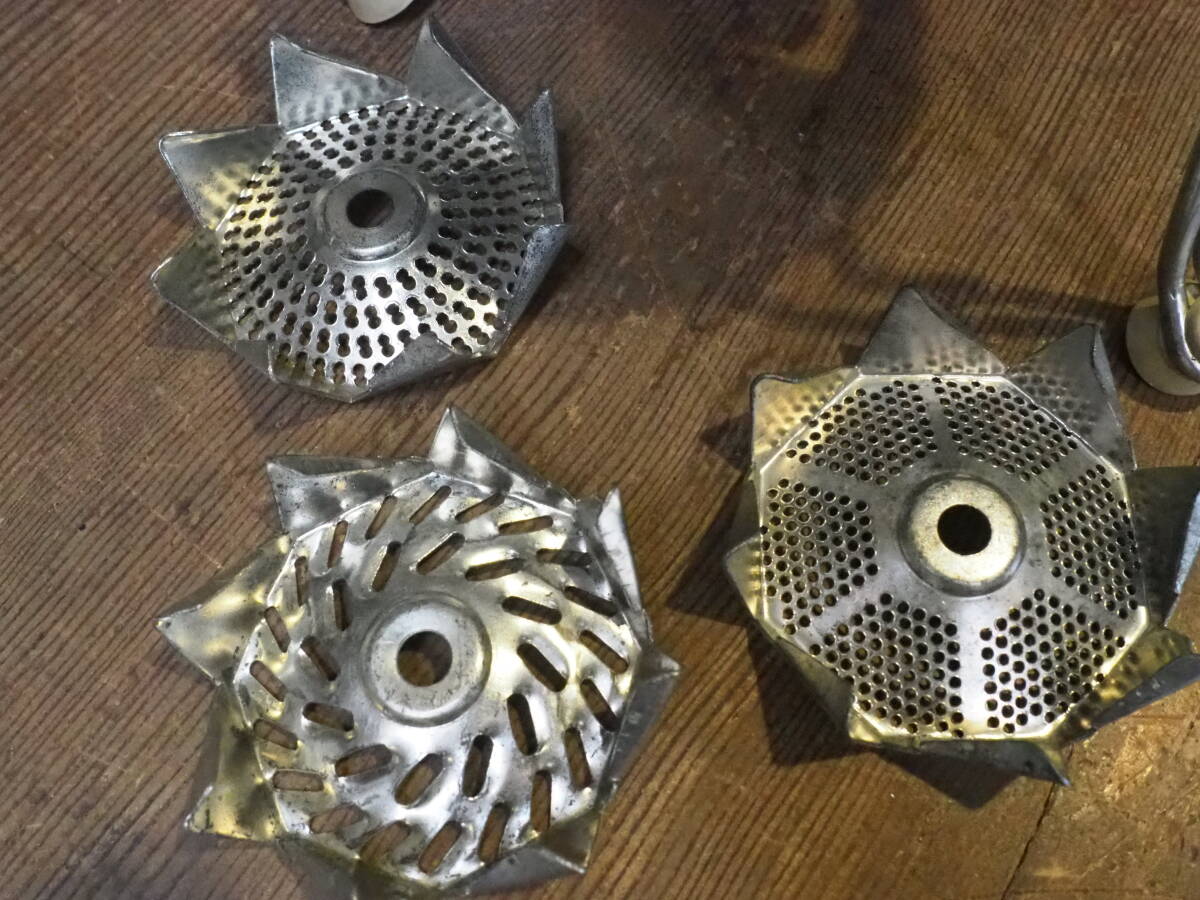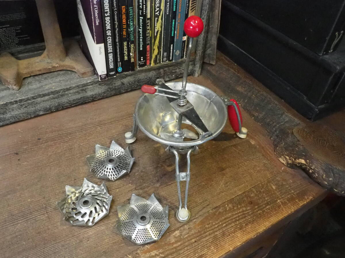 【フランス蚤の市フードチョッパー】替え刃3点付きミンチマシン古道具ミルアルマイトアンティーク骨董インテリアインダストリアル