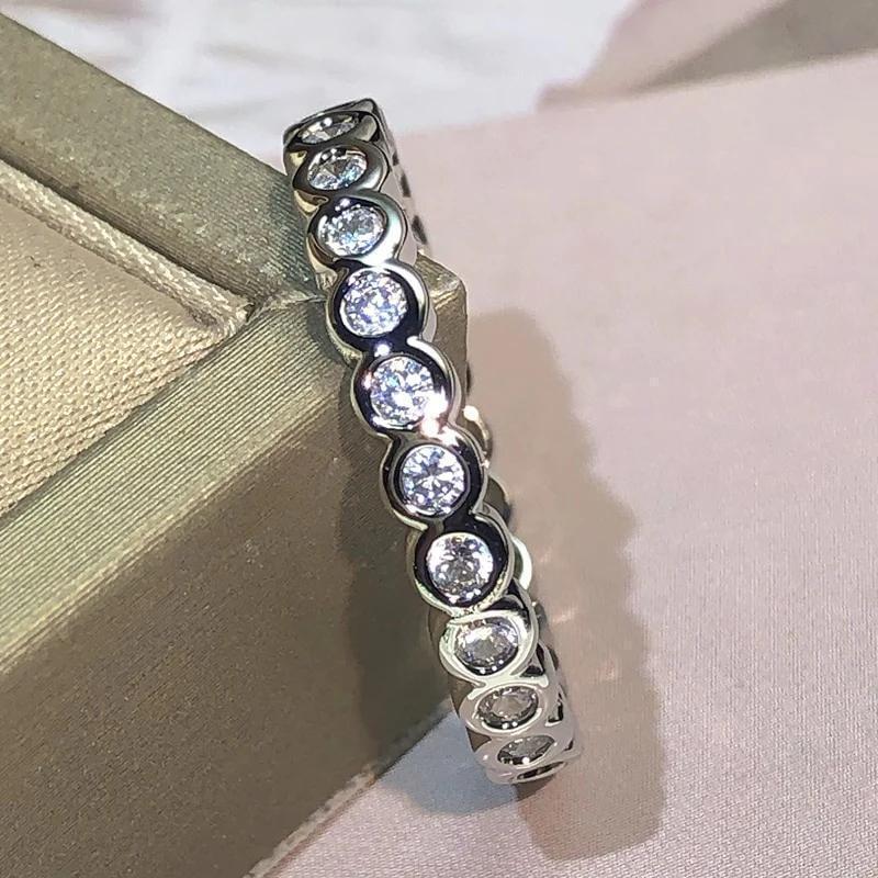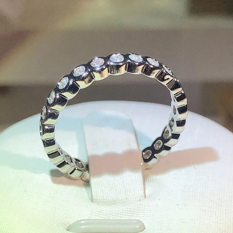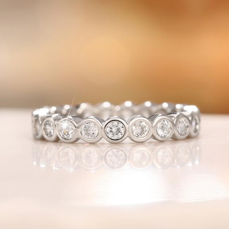 キラキラと上品に輝く小粒CZダイヤとシックなベゼルフレームデザインがお洒落なフルエタニティリングです。