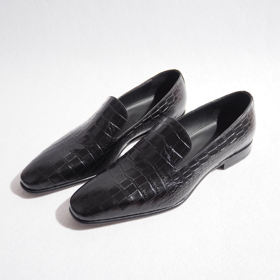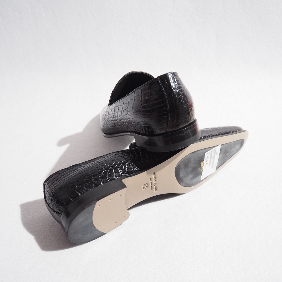 DJAN-EC クロコダイル型押し レザースリッポン シューズ ブラック 8.5/27.5cm