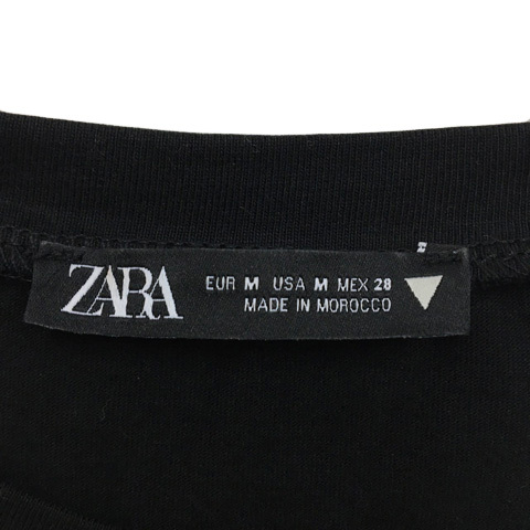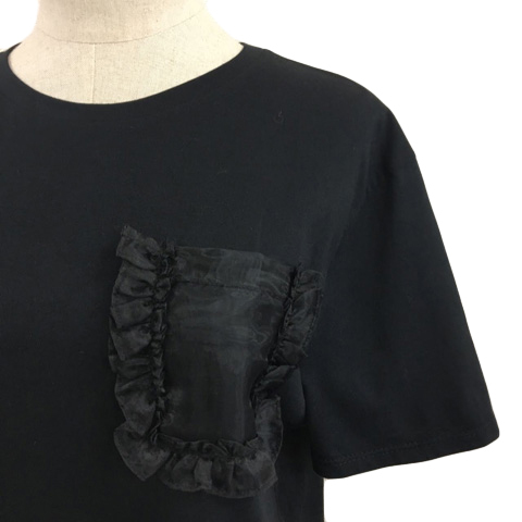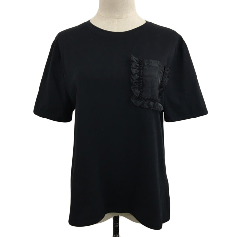 ザラ ZARA カットソー Tシャツ ラウンドネック フリル シアーポケット 半袖 USA M 黒 ブラック レディース