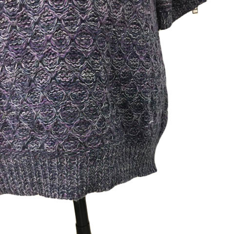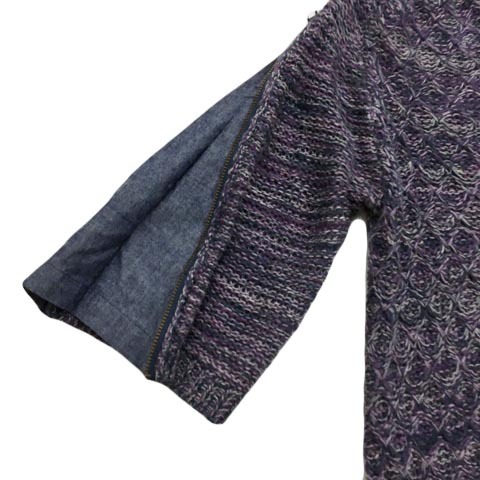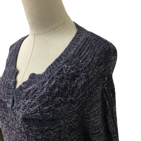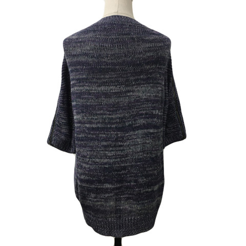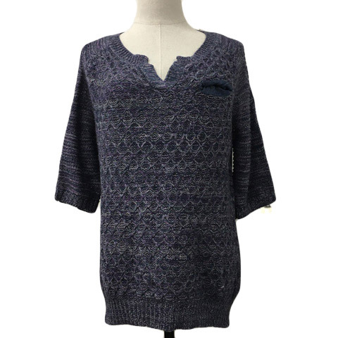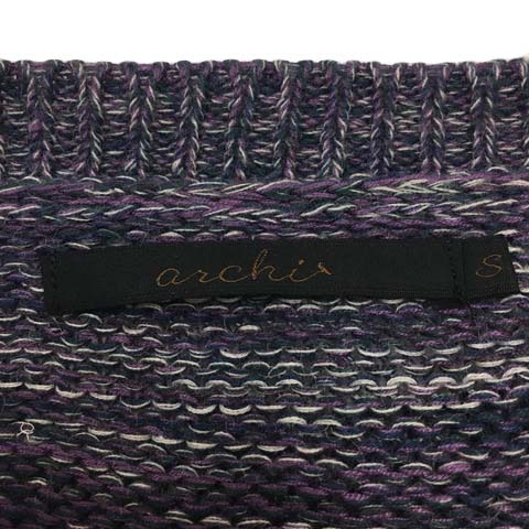アーキ archi セーター ニット プルオーバー キーネック メランジ リネン混 七分袖 S 紫 紺 パープル ネイビー レディース