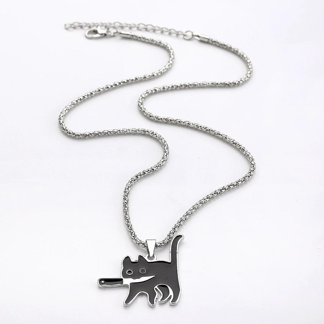 とてもかわいくて愛らしく、ナイフを咥える黒猫ちゃんが印象的なファッションネックレスです。
