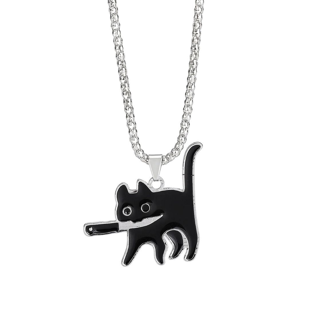 ネックレス ナイフを咥える 黒猫 ネコちゃん 猫 キャット CAT 首 アクセサリー ヒップホップ ジュエリー ジュエル jewel レゲエ クラブ CLUB メンズ 男女兼用 HIPHOP ヒップホップ系 ストリート系 B系 ギラギラ ハード ロック パンク コア 個性的 オシャレ かっこいい コーディネート ファッション 普段使い デイリー 大人 大学生 高校生 プレゼント ギフト 贈り物 誕生日 バースデー クリスマス xmas 記念日 アニマル かわいい