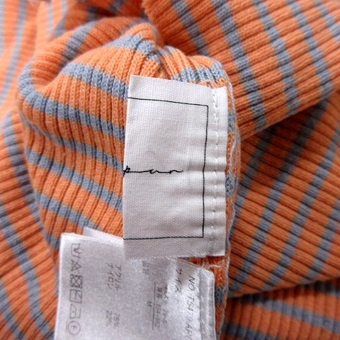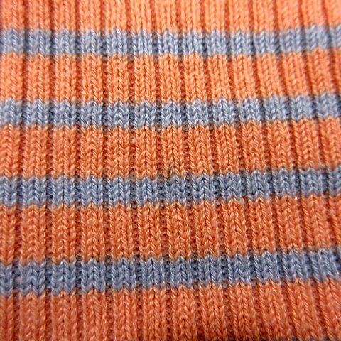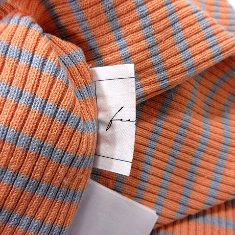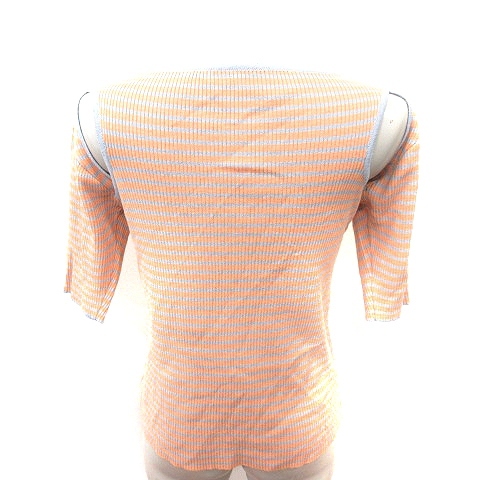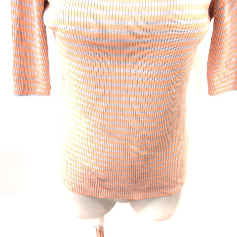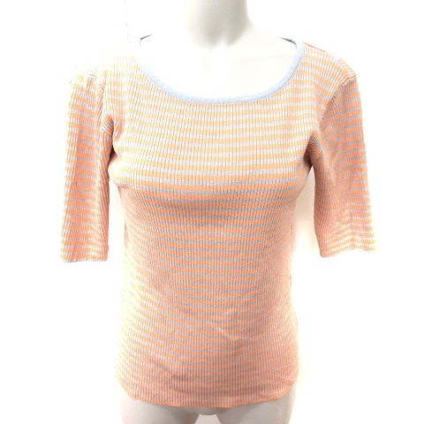 フェピュール feepur ニット カットソー Uネック 五分袖 ボーダー M オレンジ /RT レディース