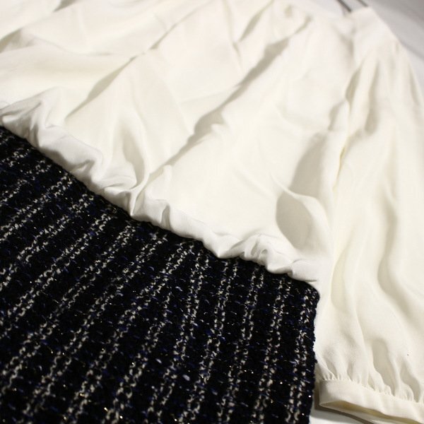 とろみ切り替えライトツイードの綺麗めワンピースです。