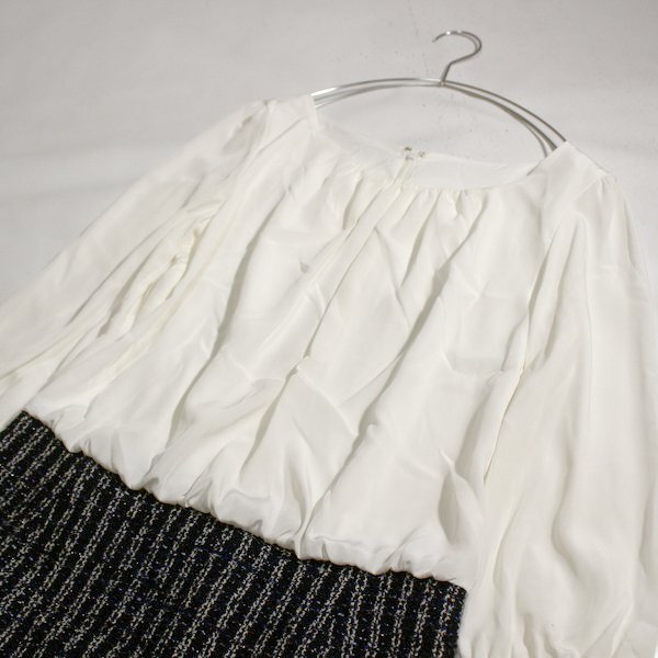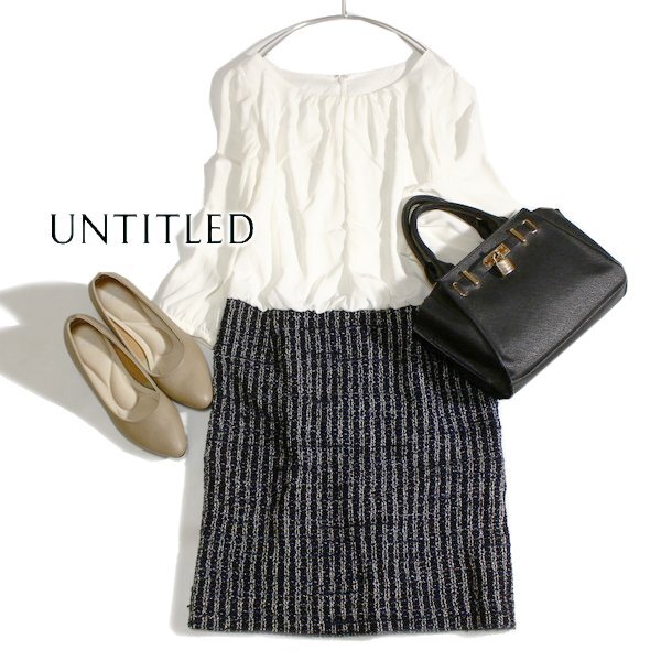 美品 UNTITLED アンタイトル とろみ切り替え ライトツイード ワンピース 2号 M 春 秋 合服 25B03