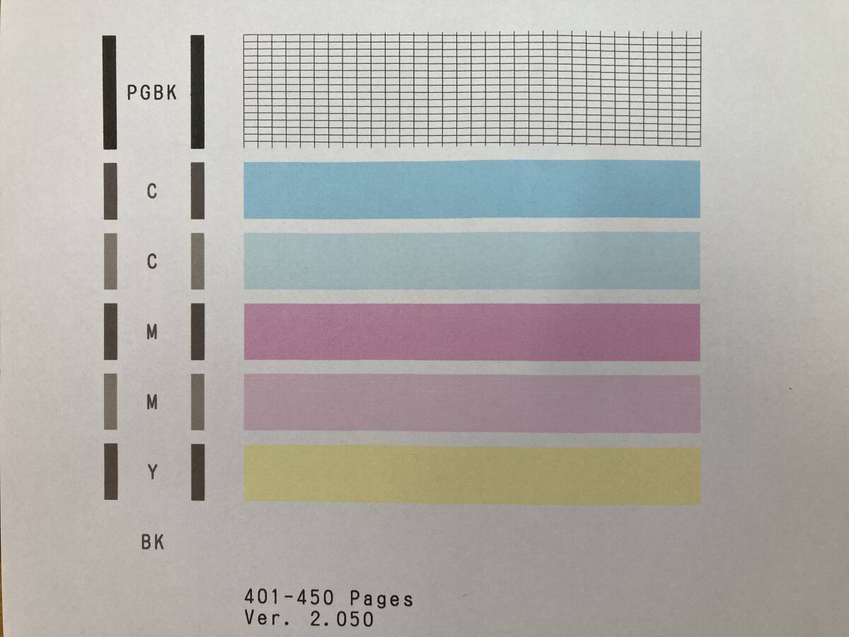 ノズルチェック、A4モノクロカラーコピーの確認を行っております。
