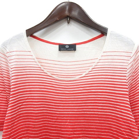 レナランゲ RENA LANGE カットソー クルーネック ボーダー 半袖 S 赤 レッド /MN レディース